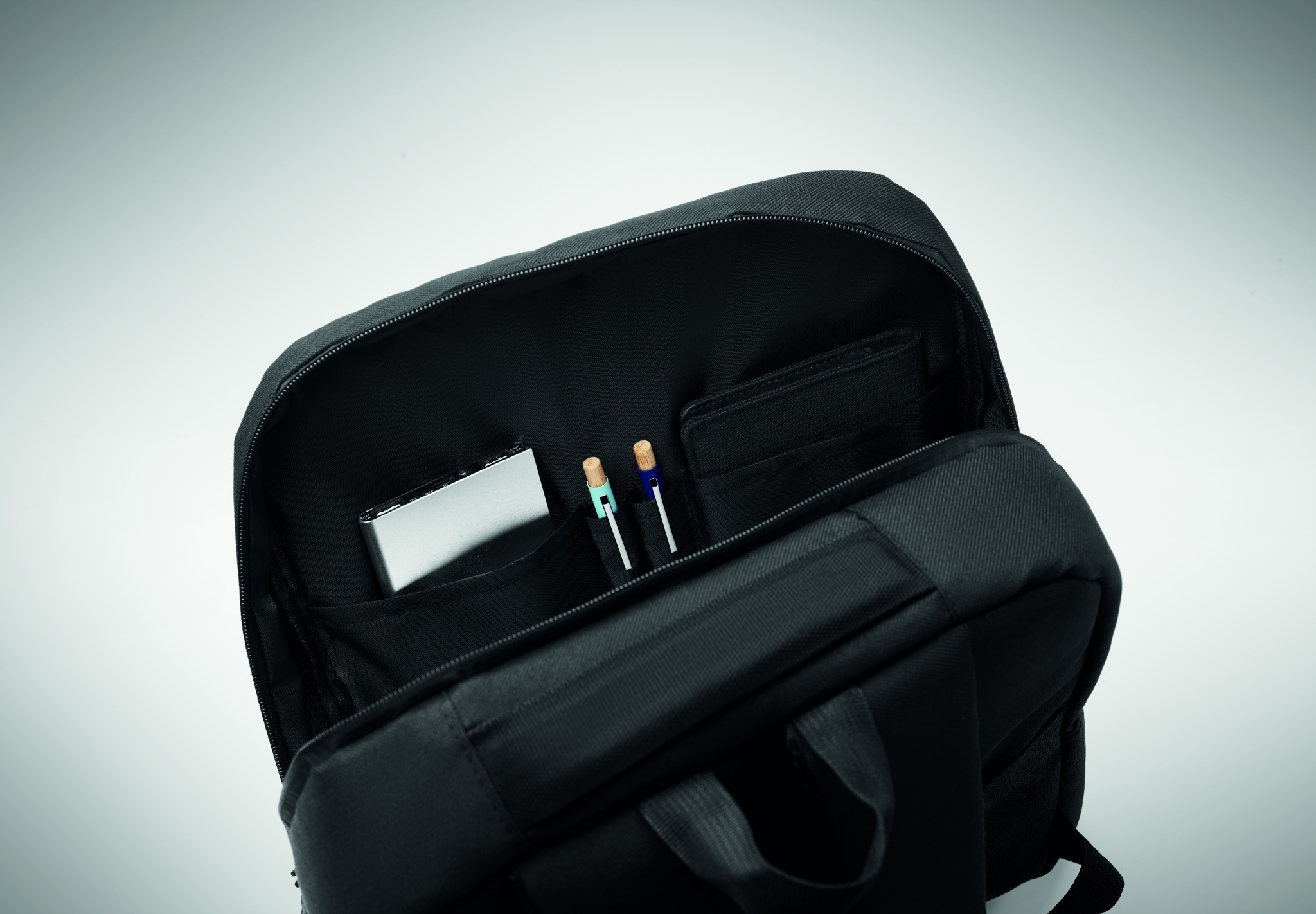 Logo trade promotional product photo of: Slim 15 inch laptop backpack made of 600D RPET polyester with a 210D lining and customizable printing