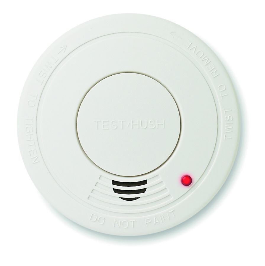 Smoke detector in plastic casing with red operating light. Includes 2 screws for easy fixing. One 9 Volt battery included.