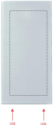 Power bank 8000 mAh in aluminium and solar panel. Capacity for smartphone use, output current DC5V/1A and DC5V/2A. Includes indicating light and USB cable with micro usb plug.