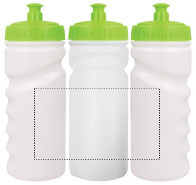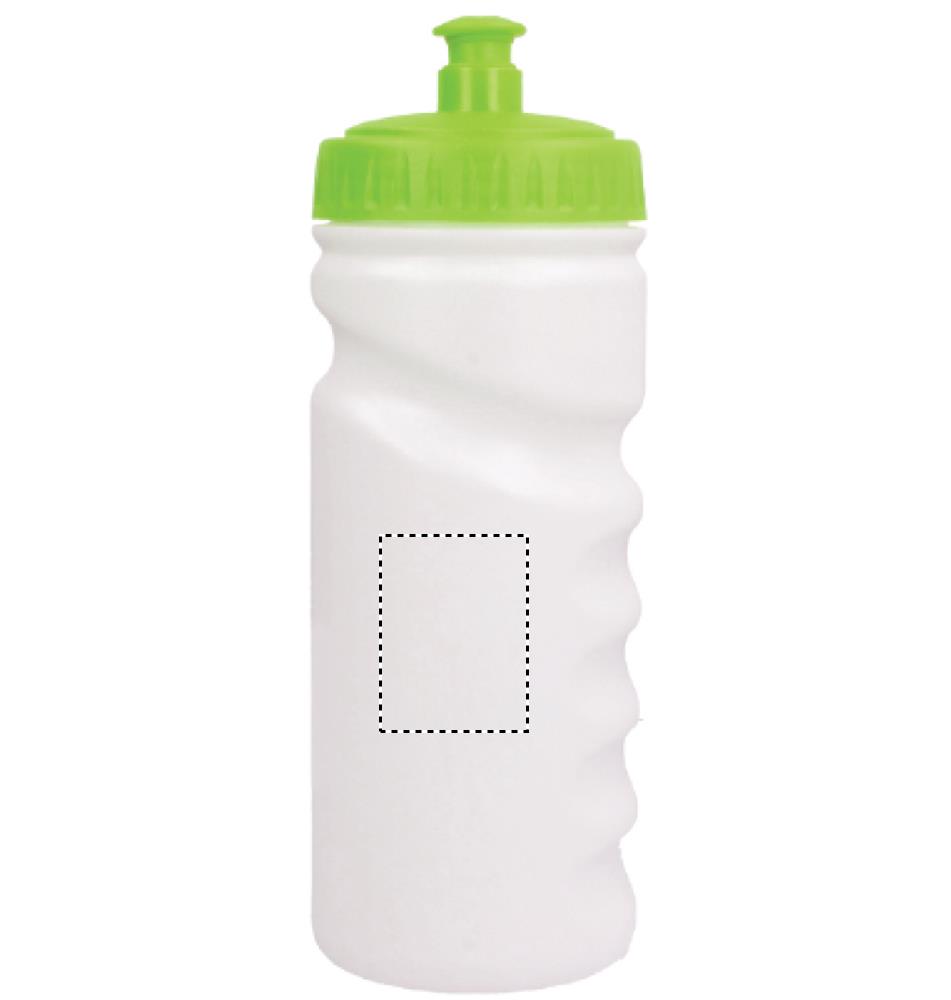 Sports drinking bottle with convenient handgrip in solid PE plastic which is BPA free. Capacity: 500 ml. Leak free.