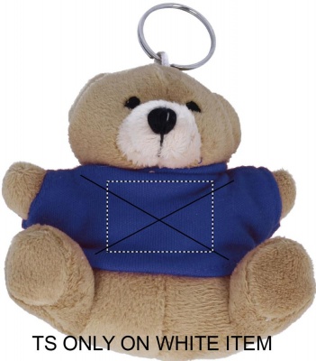 Teddy bear plush key ring. 100% cotton t-shirt for logo imprint.