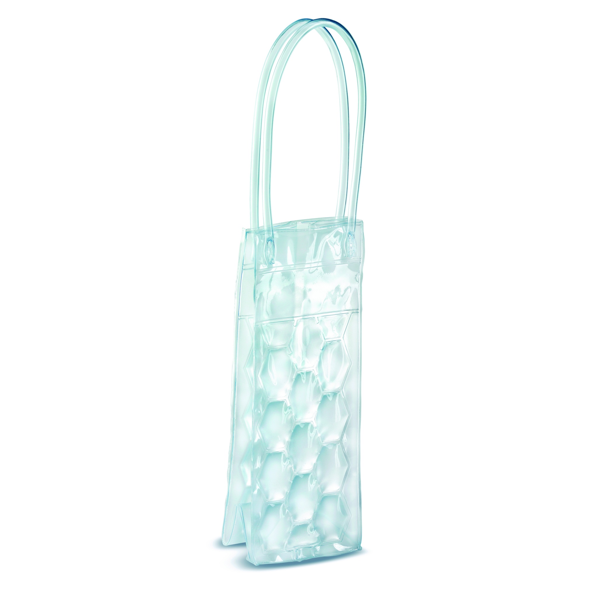 Cooler bag in transparent PVC for one bottle. Put the cooler in the freezer before using and it will keep your bottle cool for longer.