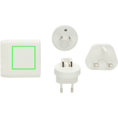 Charge anywhere you go with the Travelcharge Pro. It comes equipped with 2 USB C port and 2 USB A port to charge any mobile device you take on your travels. With integrated plug for US and additional EU, UK and AUS plug to charge in more than 100 countries worldwide. Max output: 5V/3A. Input: AC100-240V. The adapter comes in convenient travel pouch to take it to any destination. The charger is made with recycled ABS. Total recycled content: 57% based on total item weight. RCS certification ensures a completely certified supply chain of the recycled materials. PVC free. Packed in FSC® mix packaging.
