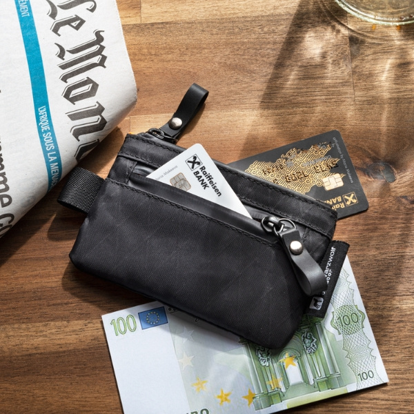 Small Schwarzwolf travel case for accessories, ID papers, money or credit cards, which you will appreciate during your activities. The case has a RFID protection and contains one main zipper pocket and a side zipper pocket. It is made of a special fabric with increased abrasion resistance and has waterproof zippers.