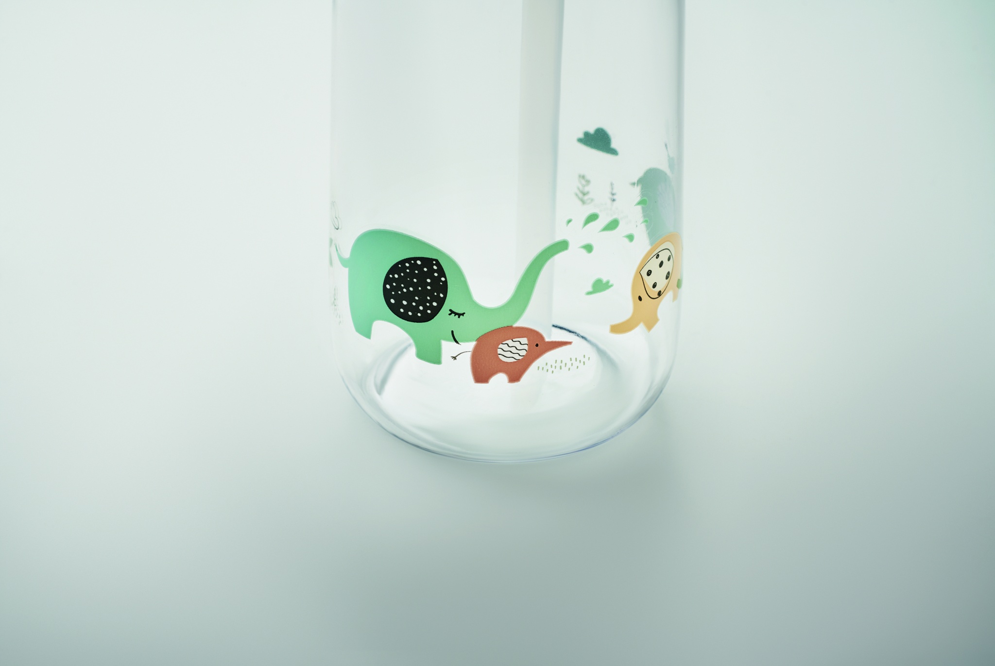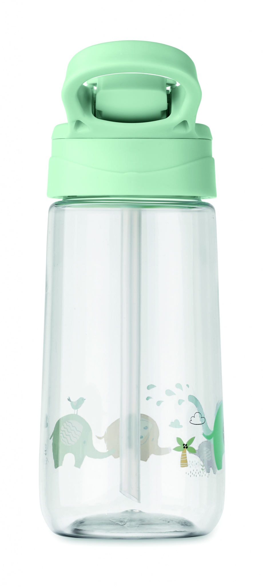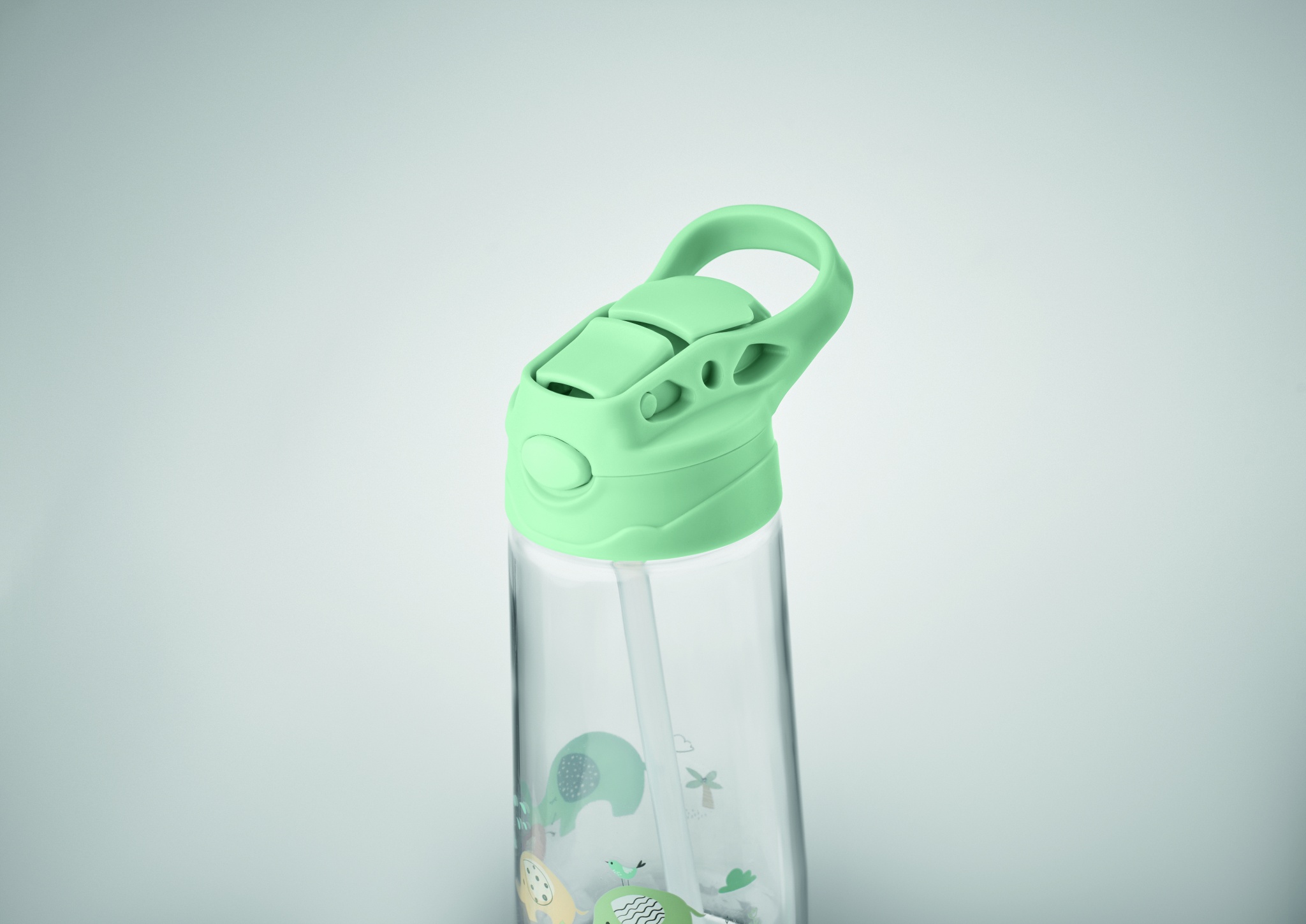 Kid's drink bottle in tritan with built in straw lid. Leak free. Capacity: 450 ml.