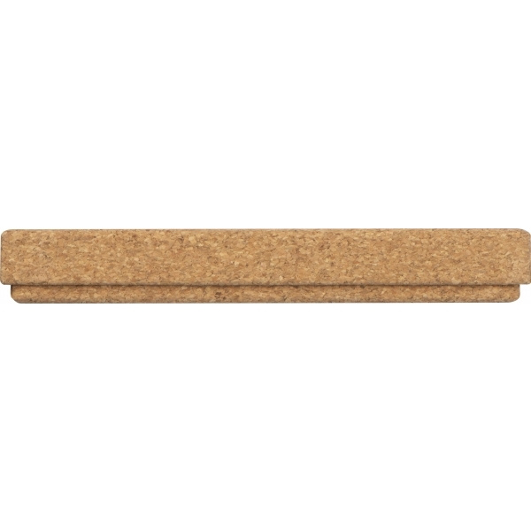 High-quality twist-action metal ballpoint pen with cork coating, blue-writing refill in a case that is also made of cork. Your logo will be engraved next to the clip.