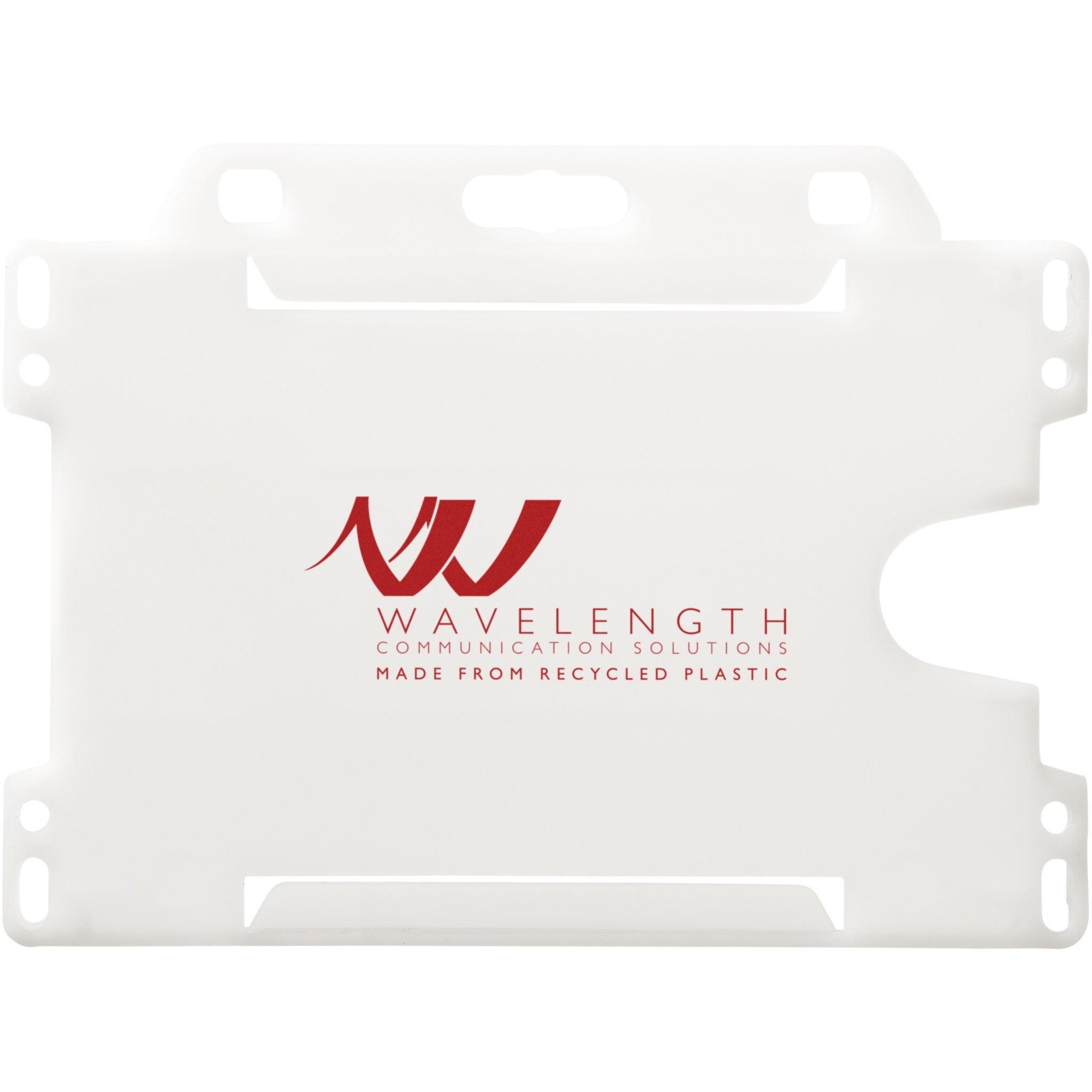 Landscape card holder made from recycled plastic. Ideal for exhibitions, workplaces, and networking events. Suitable for standard business card and credit card sized passes. Due to the nature of recycled plastic, colour shades may vary slightly, and there may be specks of colour. Made in the UK.