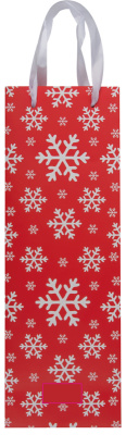 Paper gift bag with a beautiful Christmas design and two carrying handles, for a wine bottle. We stick your logo on a CMYK label to the bag.