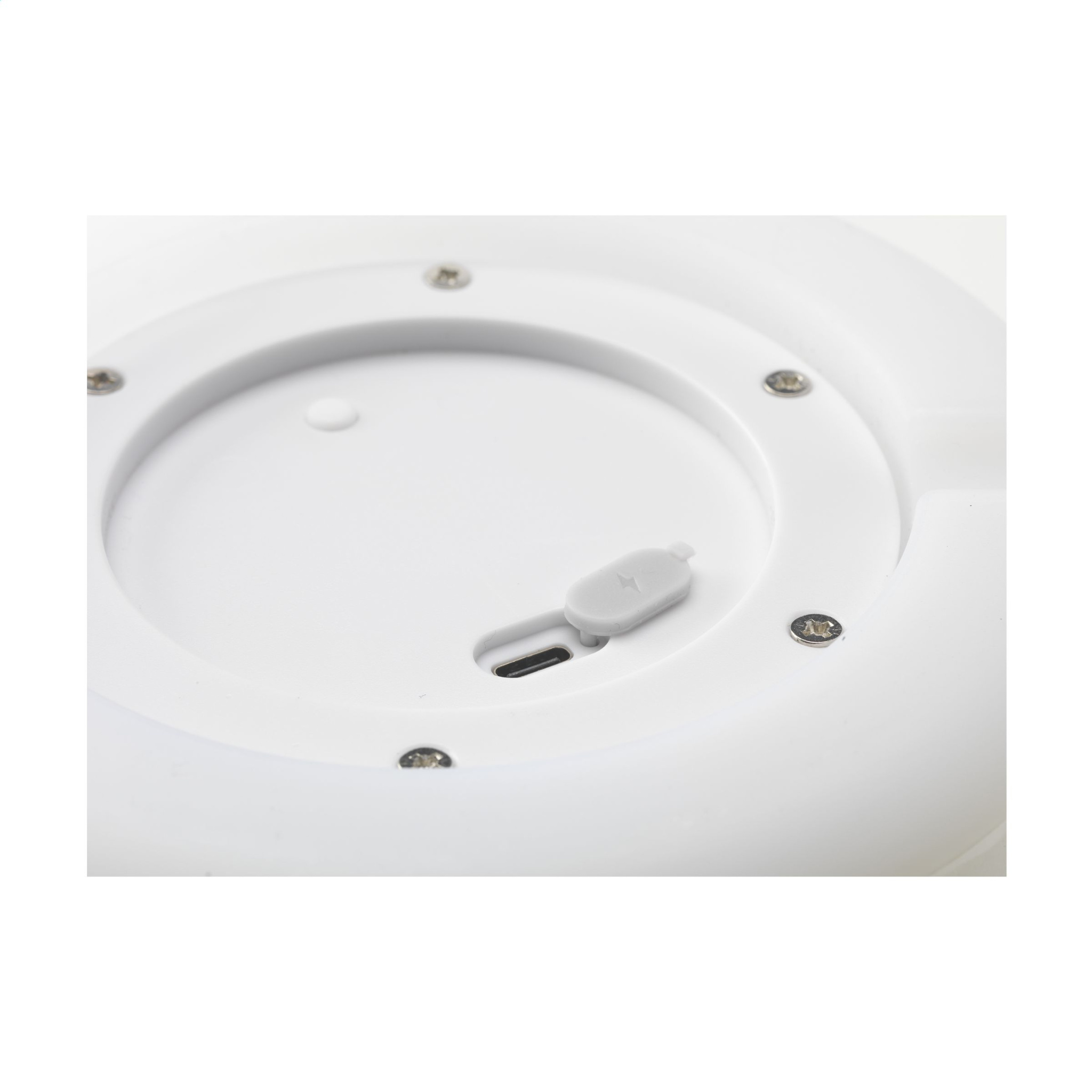 Rechargeable solar lamp from the Wooosh brand. This lamp is equipped with an integrated solar panel on the top of the lamp and a sturdy, imitation leather handle. The milky white plastic shade dampens the LED lamp slightly, emitting a soft, warm light. With its simple design this modern, cordless lamp is easy to move and so can be used in any environment, both indoors and outdoors. This lamp is charged by sunlight. If the panel has not received enough energy, the lamp can be charged with the included USB-C charging cable. It can also be controlled from a distance with the included remote control. A beautiful eye-catching lamp for atmospheric moments indoors and outdoors. Includes a rechargeable battery (800 mAh) and a user manual. Each item is supplied in an individual brown cardboard box.