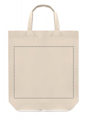 Kokkupandav lühikeste sangadega puuvillane ostukott. 100 gr/m². Tarnitakse lahtivolditult.