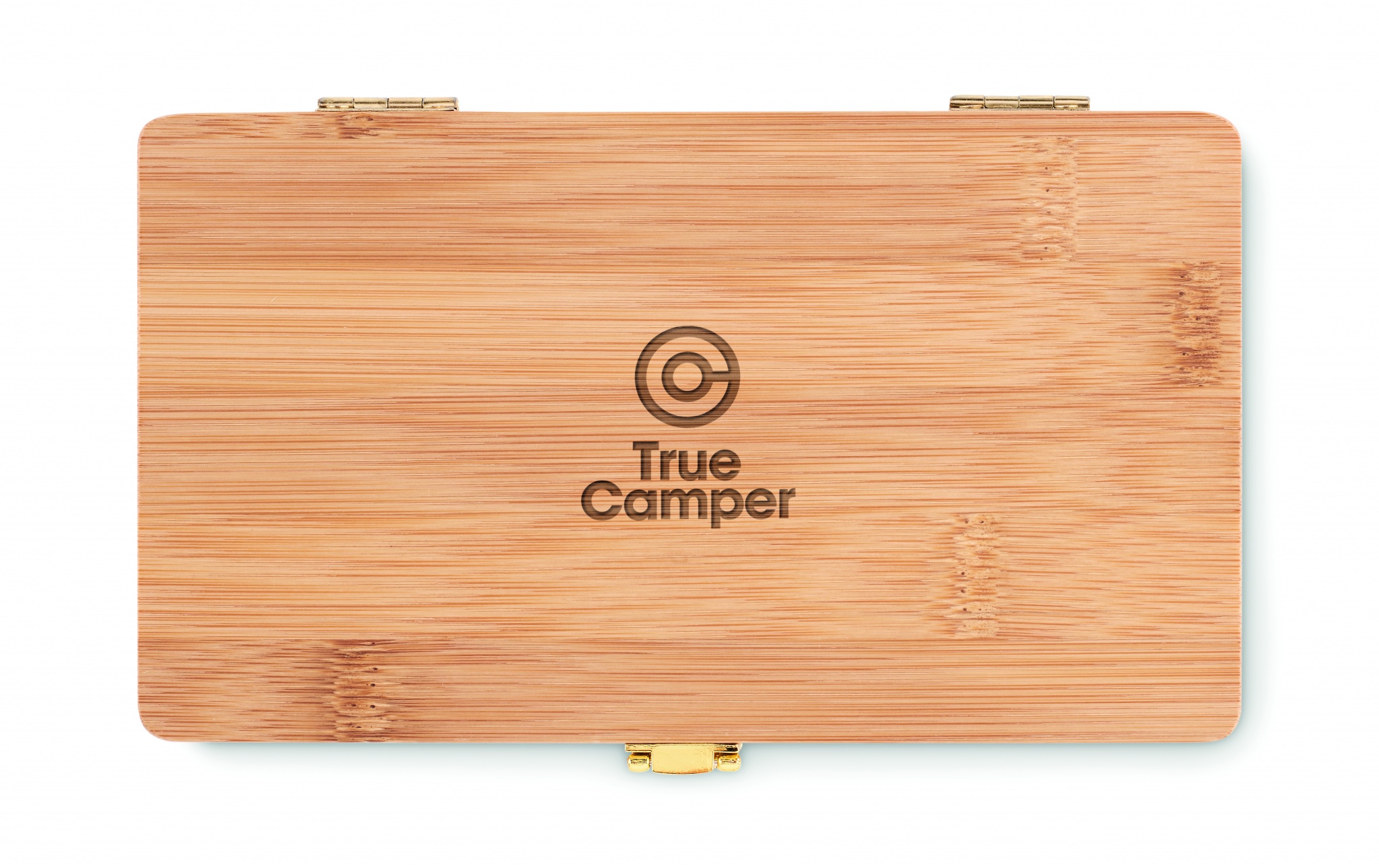 Logo trade ärikingi pilt: 21 tk tööriistakomplekt bambusest kohvris