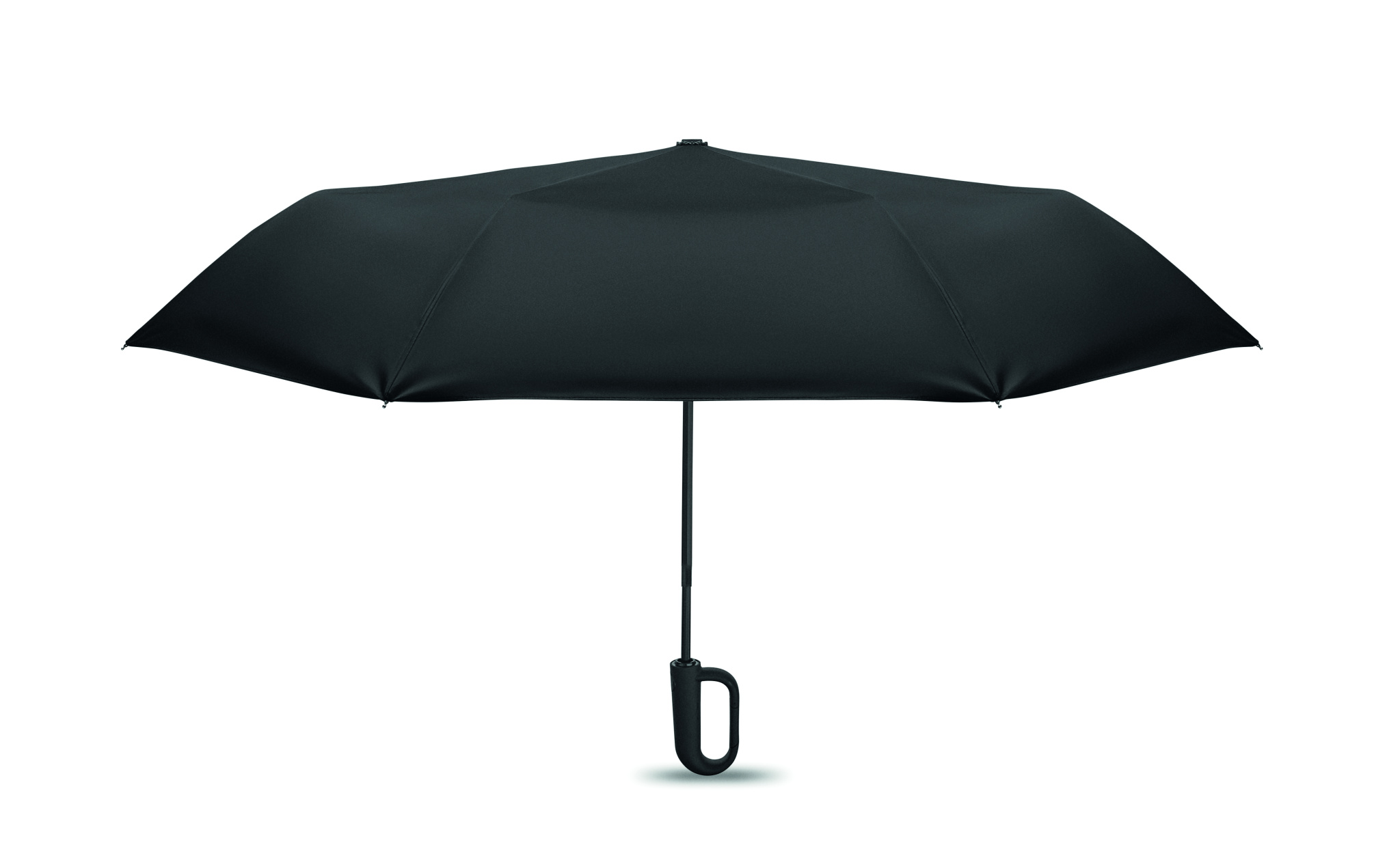 Kokkupandav 21-tolline tuulekindel vihmavari täismusta kattega klaaskiust raamiga. Klaaskiust ribid. 190T RPET pongee paneelid. D-kujuline karabiiniga käepide kummist viimistlusega. Automaatne avamine ja sulgemine. Vutlar kaasas.
