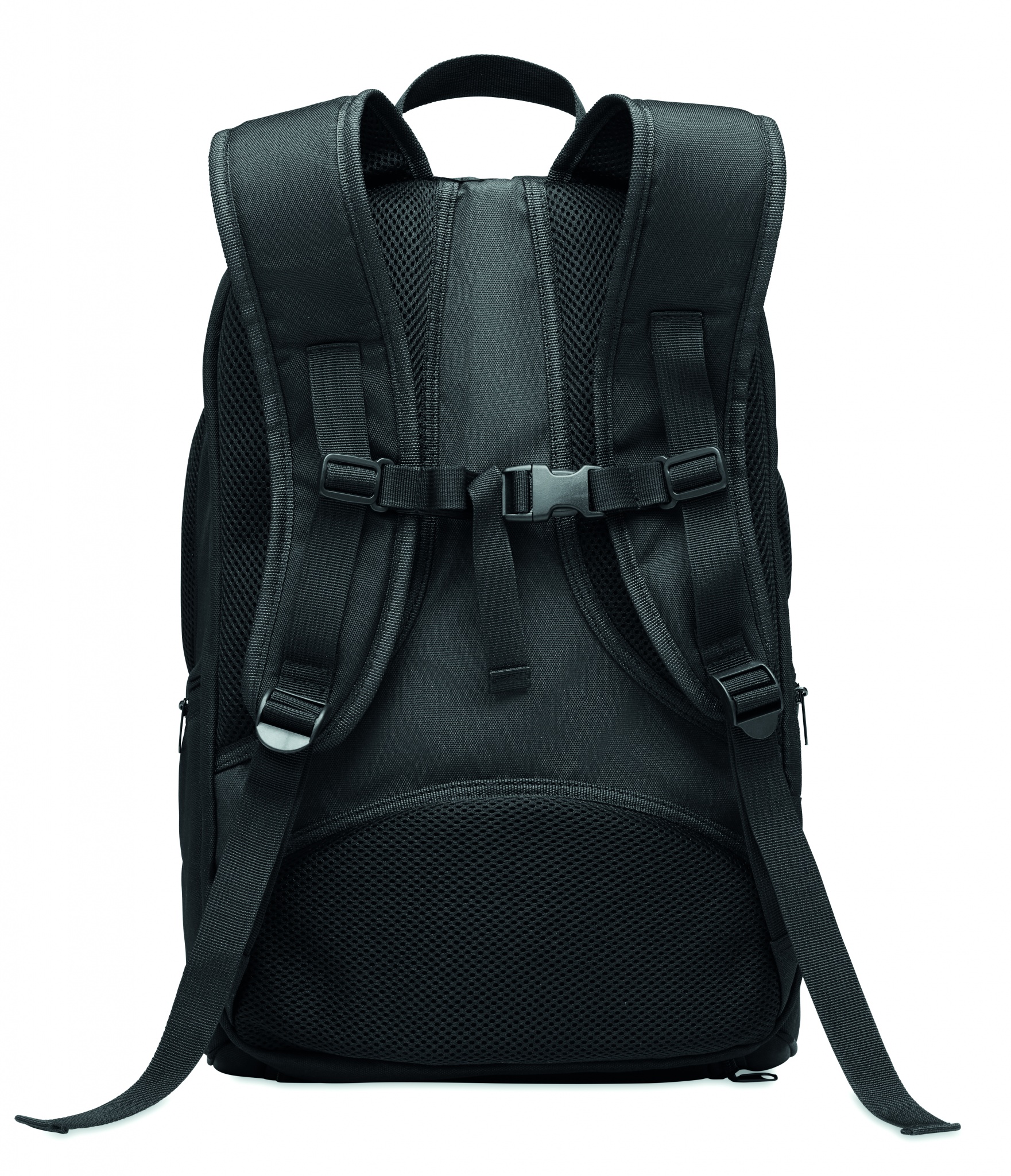 Multifunktsionaalne 600D RPET spordiseljakott mitme lahtriga (sh polsterdatud sahtel aereketi jaoks). Kaasas reguleeritav õlarihm.
