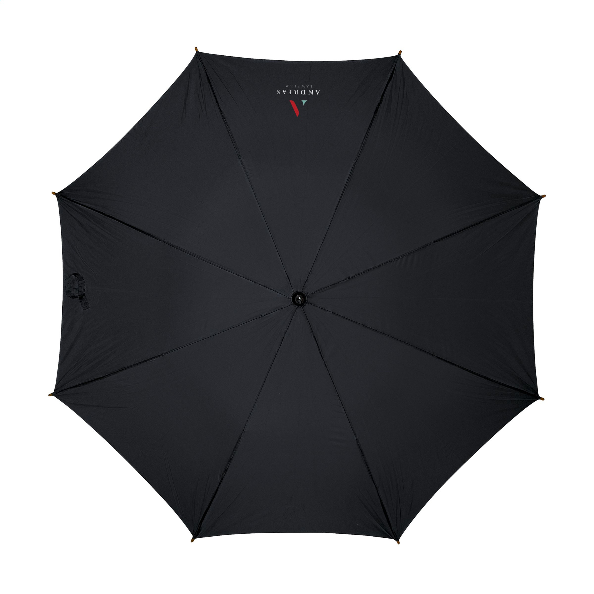 Automaatse teleskoopavaga vihmavari, 190T polüester varikatus, metallraam, puidust vars ja käepide ning takjakinnitus.