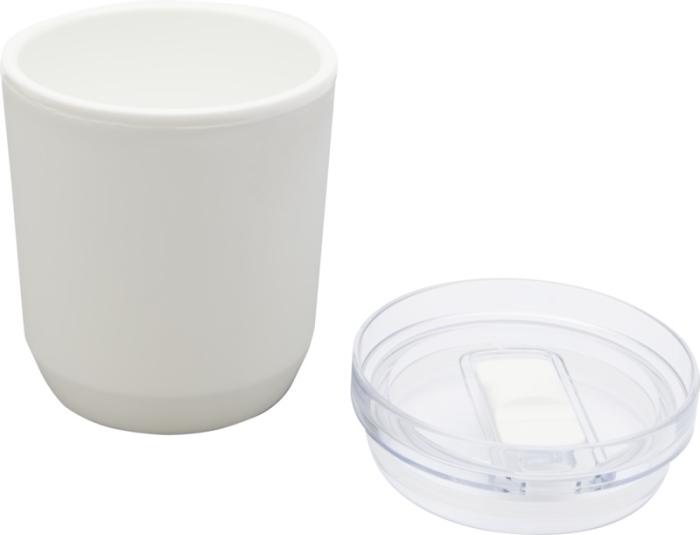 Lihtsa disainiga trummel, mis sobib enamiku kohvimasinate ja auto tassihoidjatega. Sellel on kahekordne seinakonstruktsioon, mille välispind on taaskasutatud PP-plastist ja sisemus on PP-plastist. Lükandkaas on valmistatud AS ja PP plastikust. Maht: 180 ml.