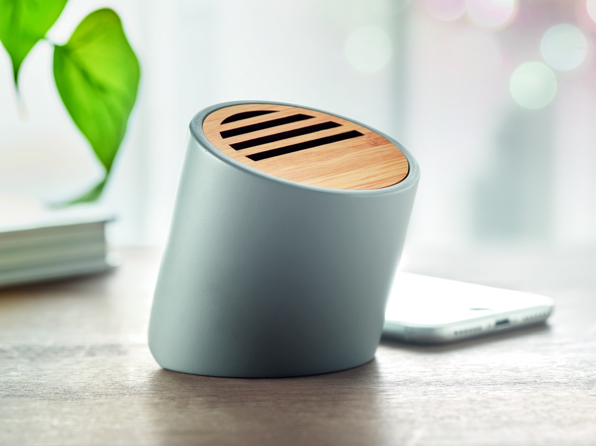 Lubjakivist tsemendist ja bambusest juhtmevaba 5.0 kõlar koos laetava 450 mAh Li-on akuga. Väljundandmed: 3W, 4 Ohm ja 5V. Mikro USB kaabel kaasas. Mänguaeg ca. 3h. Bambus on looduslik toode, ühe eseme värvis ja suuruses võib esineda väikesi erinevusi, mis võivad mõjutada lõppviimistlust.