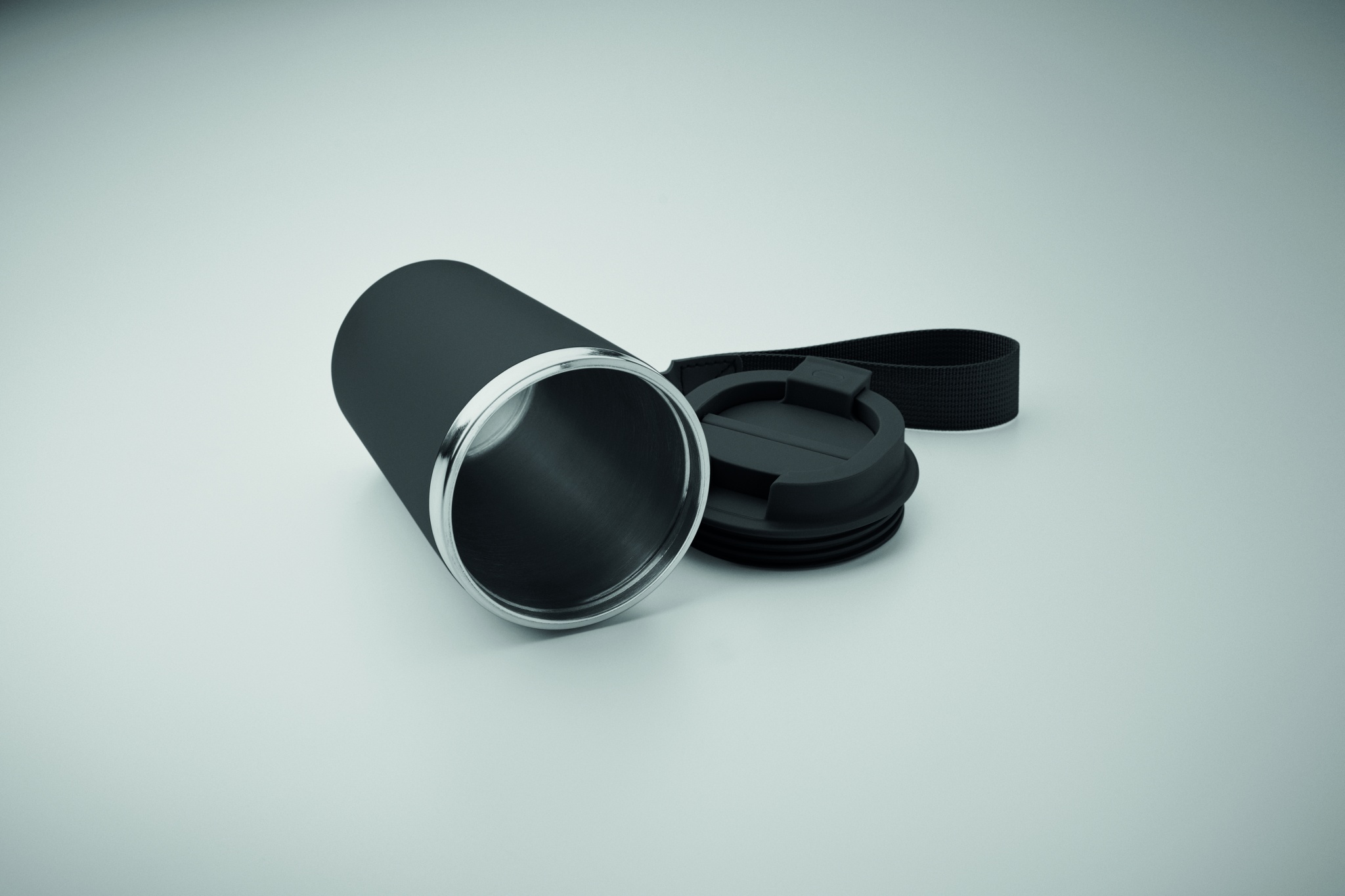 Taaskasutatud roostevabast terasest (90% taaskasutatud roostevaba terast / 10% roostevaba terast) topeltseinaga termoskruus. Väine kiht ümbertöödeldud PP-plastikust. Lisaks RPET randmepael. Lekkekindel. Mahutavus: 350 ml.