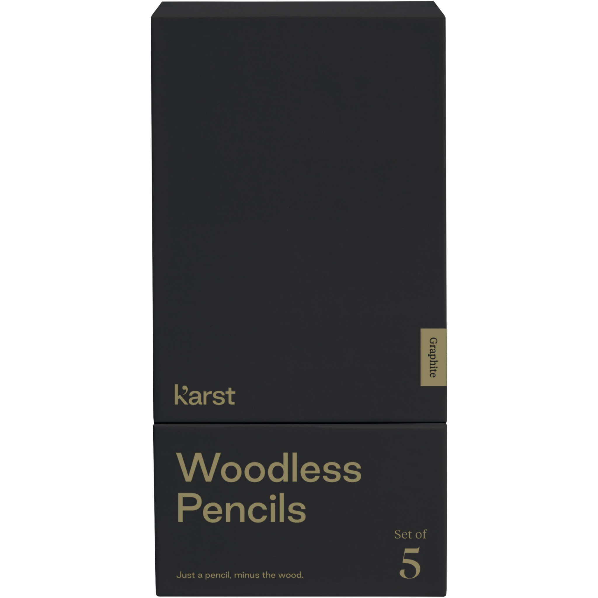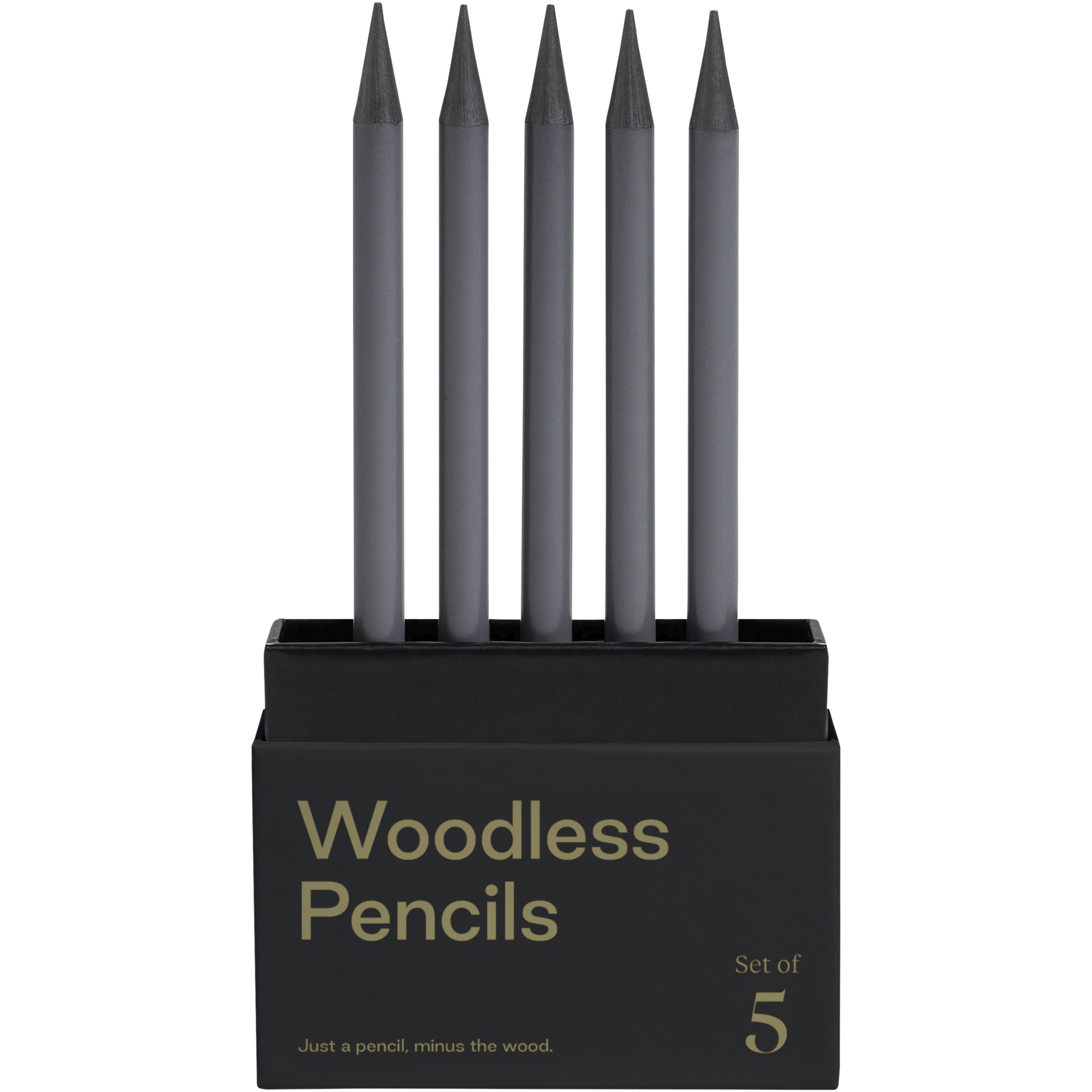 5 grafiitpliiatsi komplekt, mis pakub 5 korda rohkem grafiiti pliiatsi kohta. Puiduvaba korpust saab teravate joontega töötamiseks teritada või nüriks muuta ekspressiivsete löökide või peene varjundi saamiseks. Puiduvaba konstruktsioon võimaldab mitmekülgsust, säästes samal ajal traditsiooniliste laastude segadust. Nende pliiatsite tugev kaal tundub käes luksuslik, olenemata sellest, kas kirjutate, kritseldate, kritseldate või joonistate.
