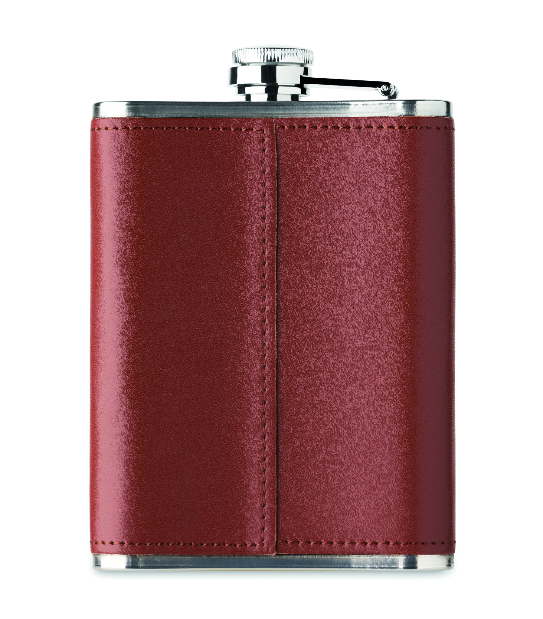 Õhuke roostevabast terasest plasku PU-nahast kattega. Mahutavus 200 ml.