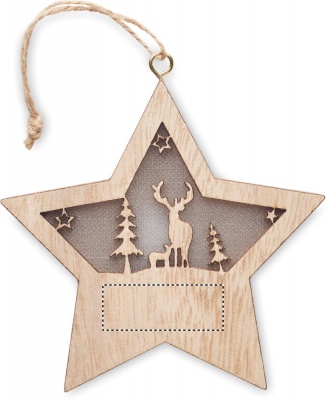 MDF-kaunistusega täht, mille sees on valgus, jõuluehete ja riputusnööriga. Kaasas 3 LR44 patareid.