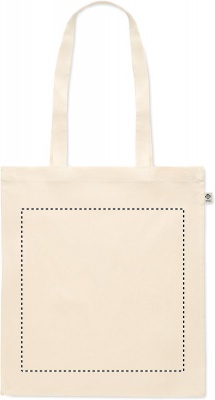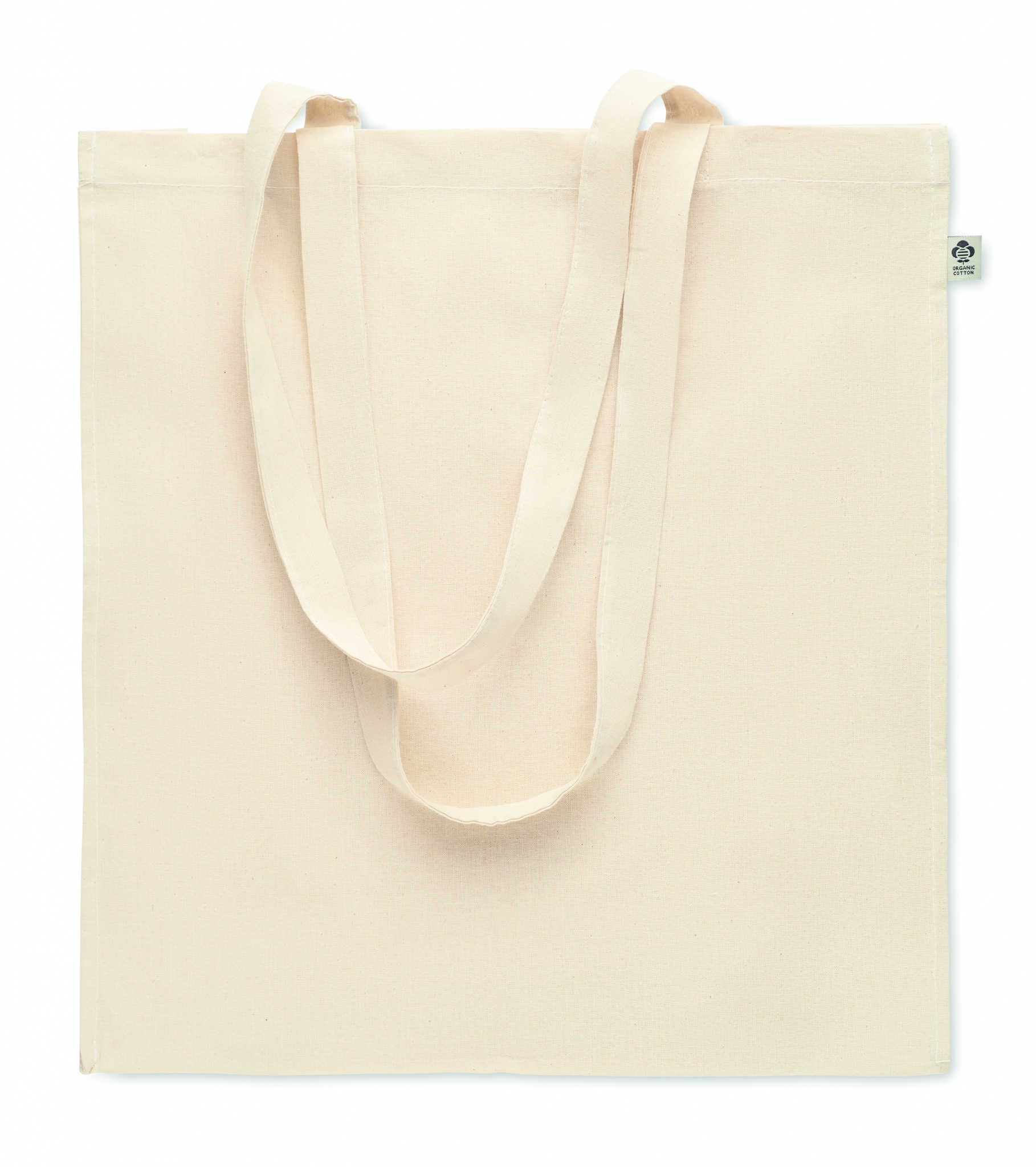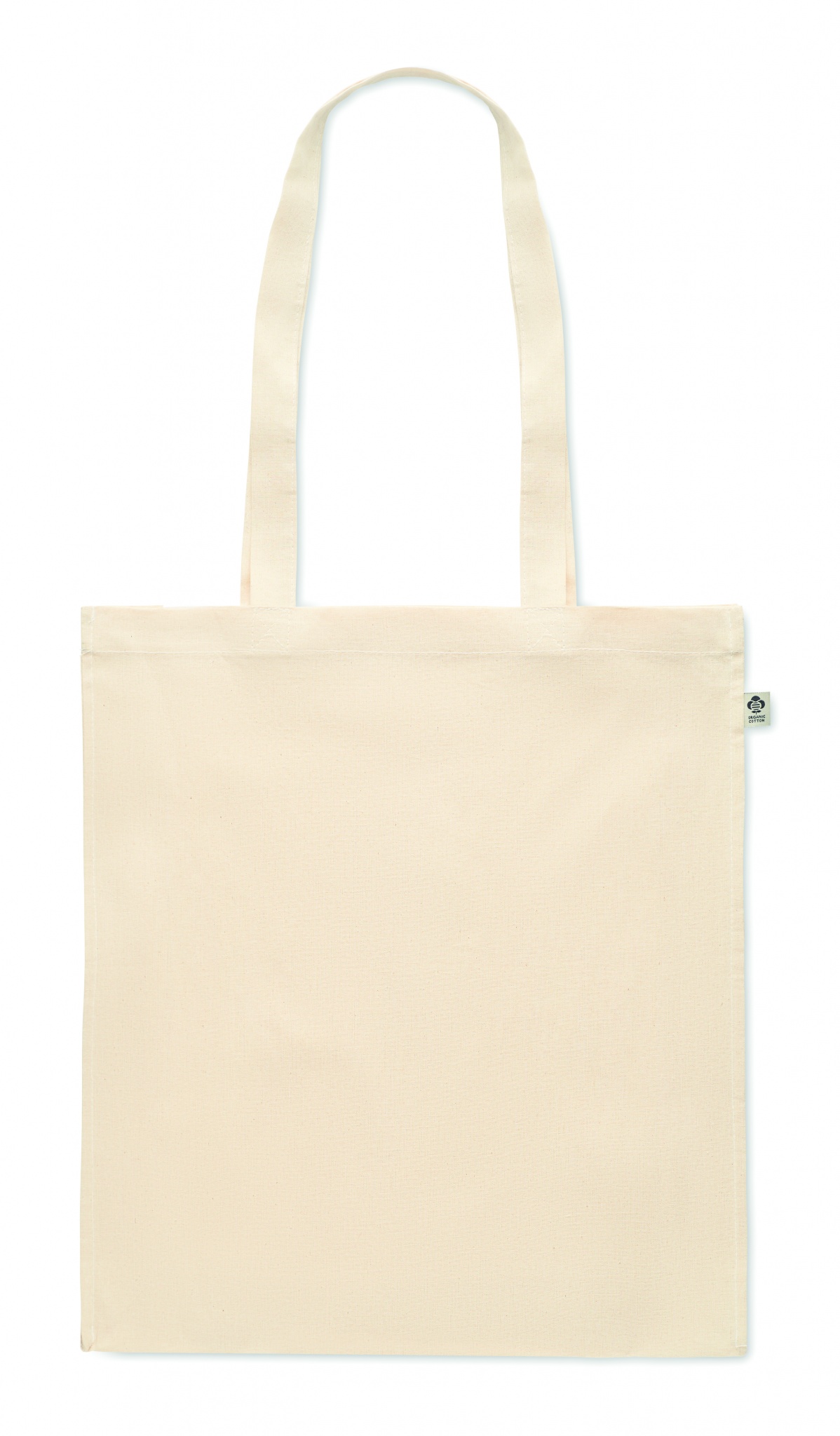 Orgaanilisest puuvillast ostukott pikkade sangade ja kinnitustega. 140 gr/m².