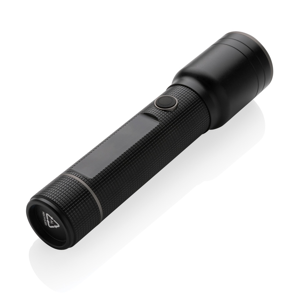 RCS taaskasutatud alumiiniumist USB-taaslaetav raskeveokite taskulamp, must
