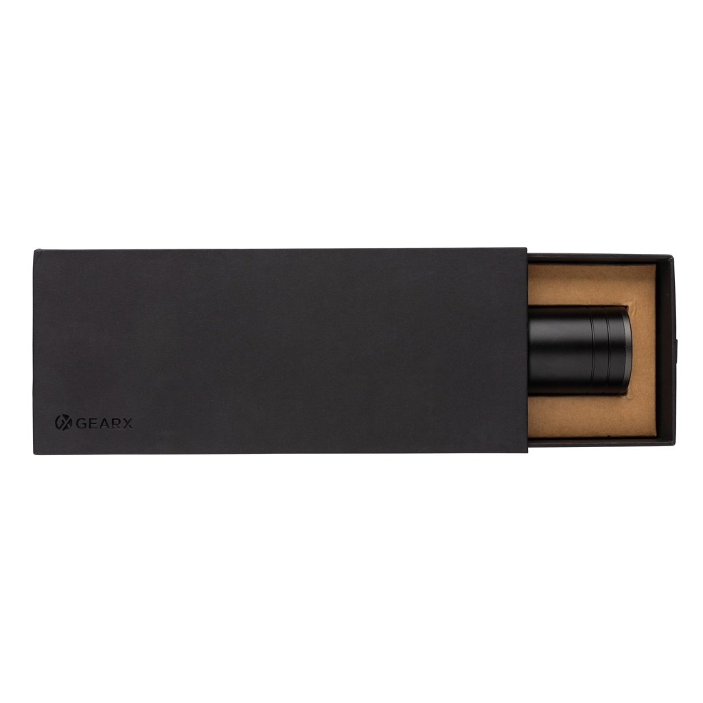 Funktsionaalsus, jõudlus ja disain tulevad kokku selles taaslaetavas 10 W taskulambis, mis on valmistatud RCS-sertifikaadiga taaskasutatud alumiiniumist. Taaskasutatud kogusisaldus: 20% eseme kogukaalust. RCS-sertifikaat tagab taaskasutatud materjalide täielikult sertifitseeritud tarneahela. IP4-klassi tõttu on see ilmastikukindel, nii et seda saab hõlpsasti õue kaasa võtta. Võimas pirn loob kuni 1500 luumenit ja valgusvihku, mis ulatub kuni 800 meetrini. Taskulambis kasutatakse korduvlaetavat A-klassi akut, seega pole patareisid vaja vahetada. Laadige lihtsalt oma USB-pesa ja kaasasoleva RCS-sertifikaadiga taaskasutatud C-tüüpi kaabli kaudu. Kvaliteetsel pirnil on 5 režiimi, sealhulgas SOS-funktsioon. 4000 mah aku võimaldab kasutada kuni 10 tundi ühe laadimisega ja võimaldab laadida mobiilseadmeid C-tüüpi kaudu. Alumiinium ei kaota ringlussevõtu käigus oma omadusi ja seda saab lõputult ringlusse võtta. Toode ja tarvikud 100% PVC-vaba. Pakitud FSC segupakendisse. Sisendtüüp-C 5V, 1A; Väljund 5V, 1A