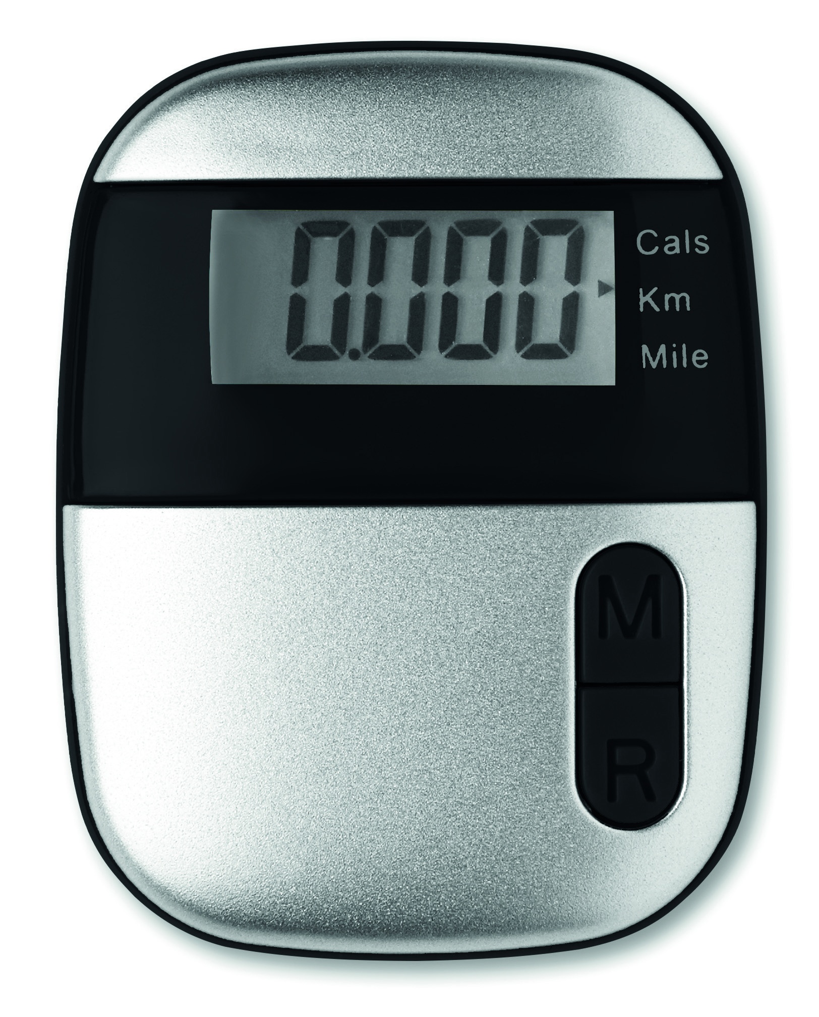 ABS-korpuses klambriga sammulugeja. Sammu, vahemaa (miilid ja kilomeetrid) ja kaloriloenduriga, kaasas 1 aku.