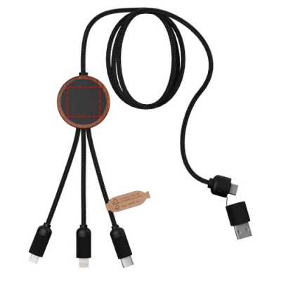 Logotrade reklaamtoote foto: SCX.design C37 5-ühes rPET-logoga laadimiskaabel ümara puitkorpusega