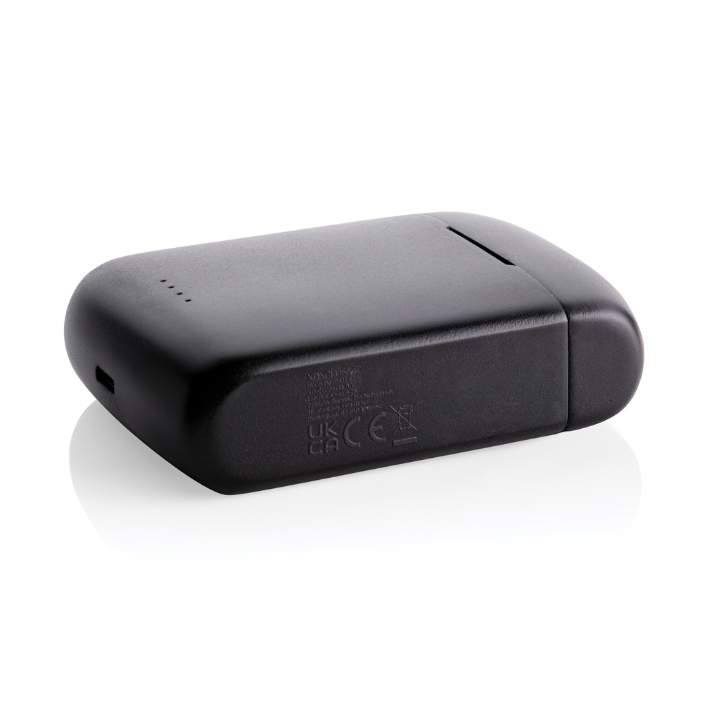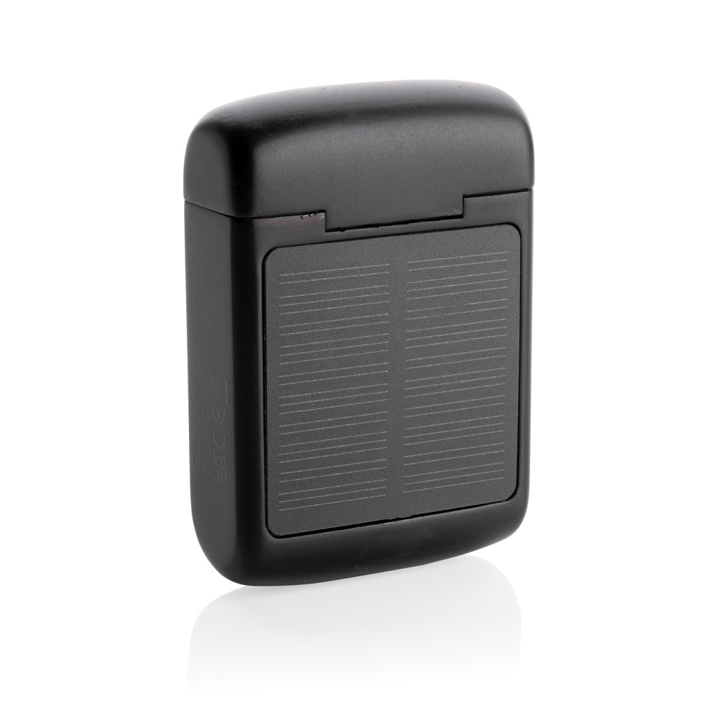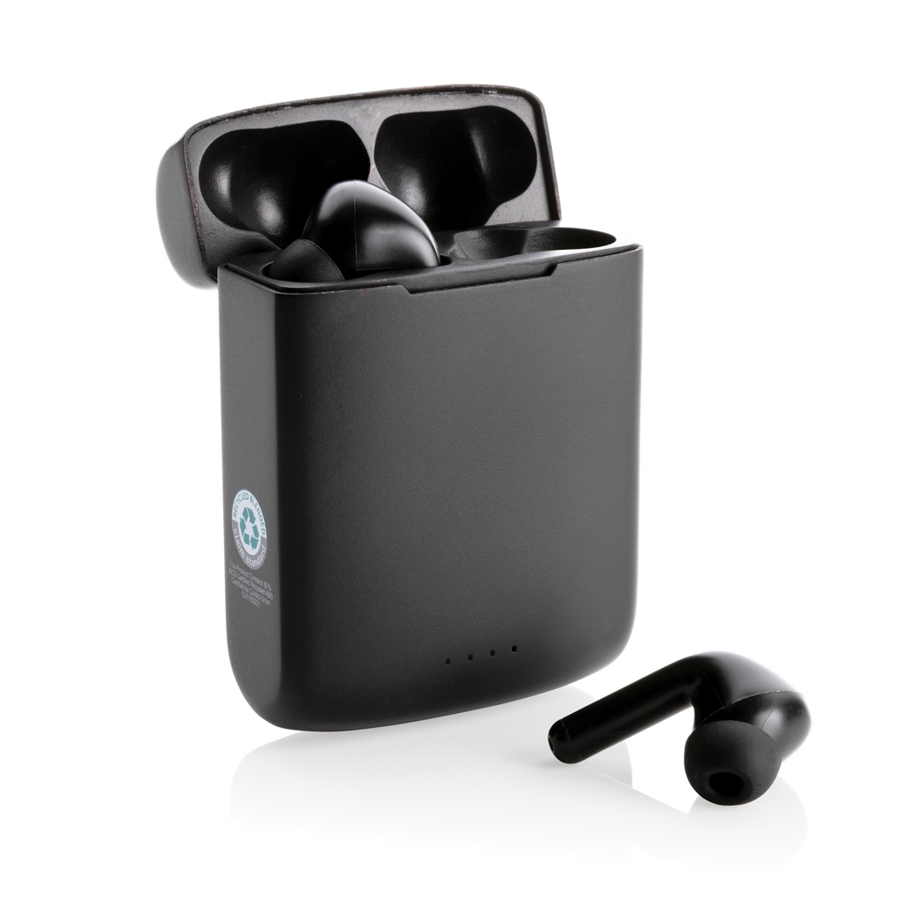 Ainulaadsed topeltlaetavad juhtmevabad kõrvaklapid koos integreeritud päikesepaneeliga korpuses, mis on valmistatud RCS-sertifikaadiga taaskasutatud ABS-ist. Taaskasutatud kogusisaldus: 21% eseme kogukaalust. RCS-sertifikaat tagab taaskasutatud materjalide täielikult sertifitseeritud tarneahela. Kõlar kasutab kvaliteetseid monokristallilisi päikesepaneele, mille konversioonimäär on 19%. Tasu määr sõltub tingimustest. Laadimiskiirus päikeseenergia: 5V/50mA. Täiuslikult istuvatel kõrvaklappidel on 35 mAh aku ja neid saab 300 mAh laadimisümbrises uuesti laadida 2 tunni jooksul. Automaatse sidumisfunktsiooniga on nii lihtne siduda oma mobiilseadmega. Mänguaeg keskmise helitugevusega kuni 5 tundi. BT 5.3-ga optimaalseks ühenduseks. Töökaugus kuni 10 meetrit. Pikari ja mikrofoniga. Kaasas 3 suuruses silikoonist kõrvaotsad ja RCS-sertifikaadiga taaskasutatud TPE laadimiskaabel. Pakitud FSC® mix kraft pakendisse. Toode ja tarvikud 100% PVC-vaba.