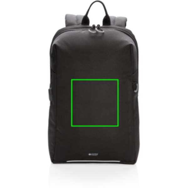 See stiilne sülearvuti seljakott on mõeldud äri- ja puhkusereisidele. Sellel on polsterdatud 15,6-tolline sülearvuti sahtel, mis kaitseb teie seadet. Sisaldab käru rihma ja USB A väljundit. Külgmine kiirjuurdepääsutasku RFID-kaitsega. Esiküljel on peegeldav turvariba. PVC-vaba. AWARE™-jälgijaga, mis kinnitab taaskasutatud materjalide ehtsat kasutamist Igas kotis on taaskasutatud 22 PET-pudelit. 2% iga müüdud toote tulust annetatakse veebisaidile Water.org.