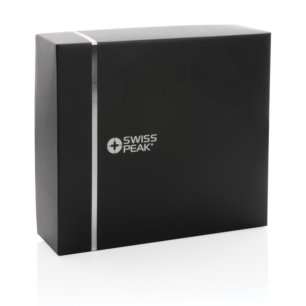 Kvaliteetse heliga juhtmevabad stereokõrvaklapid täiusliku helielamuse jaoks. 300 mAh aku võimaldab ühe laadimisega kuulata muusikat kuni 11 tundi ja laadimine võtab aega vaid 1,5 tundi. Töökaugus kuni 10 meetrit. Kõrvaklappe saab kokku voltida, nii et see mahub kaasasolevasse Swiss Peak EVA reisikotti. Alumiiniumist korpuse ja PU õhkpatjadega kõrvaklapid on piisavalt mugavad, et neid tunde kanda. Mikrofoniga kõnede vastuvõtmiseks. Kaasa arvatud AUX kaabel.