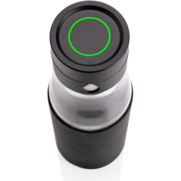 Logotrade reklaamkingi foto: Ukiyo klaasist hüdratatsiooni jälgiv varrukaga pudel