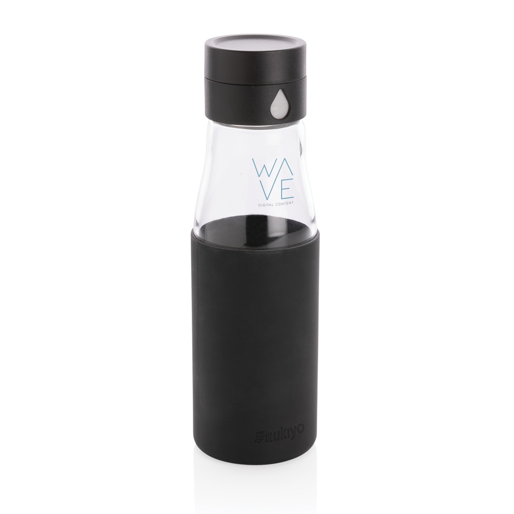 Logo trade firmakingituse pilt: Ukiyo klaasist hüdratatsiooni jälgiv varrukaga pudel