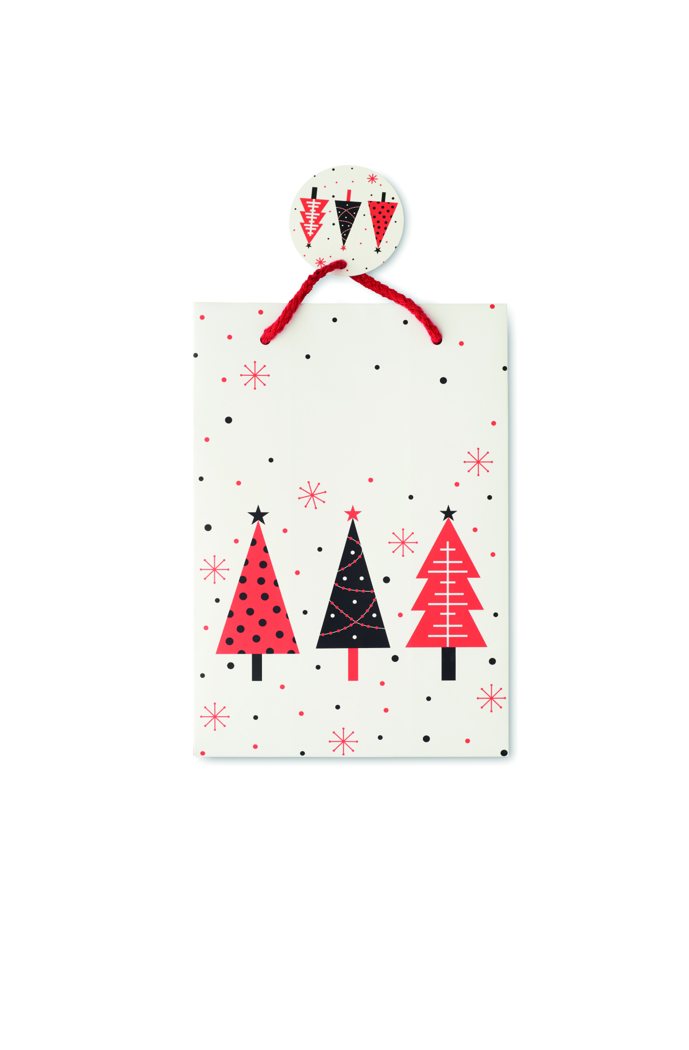 Jõuludeks mõeldud väike kinkepaberist kott (30% taaskasutatud) koos sildiga. 128 g/m². FSC®-sertifitseeritud | FSC MIX, W5.3, FSC-C213206