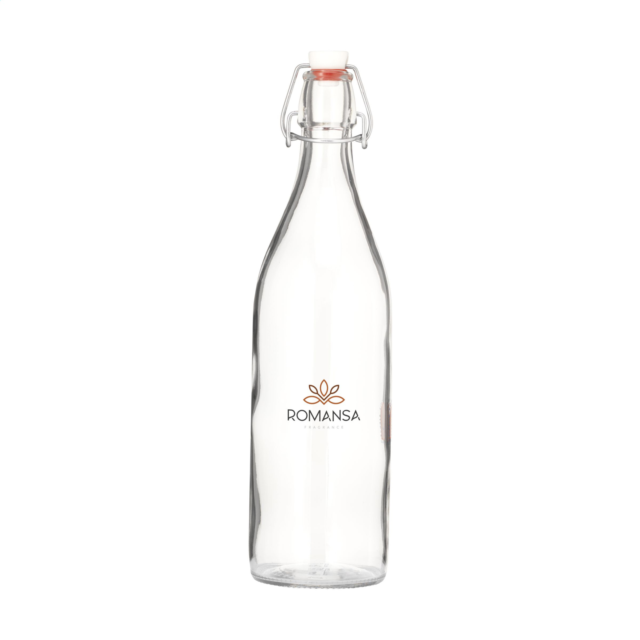 Multifunktsionaalne korduvkasutatav klaaspudel, mis on valmistatud läbipaistvast kvaliteetsest klaasist. Suletav käepärase klambrikorgiga. See pudel sobib ideaalselt vee, karastusjookide või veini serveerimiseks. Võib täita ka oliiviõli, ürtide või seemnetega. Äärmiselt sobiv igapäevaseks kasutamiseks või toitlustustööstuses kasutamiseks. Mahutavus 1000 ml. Valmistatud Itaalias.