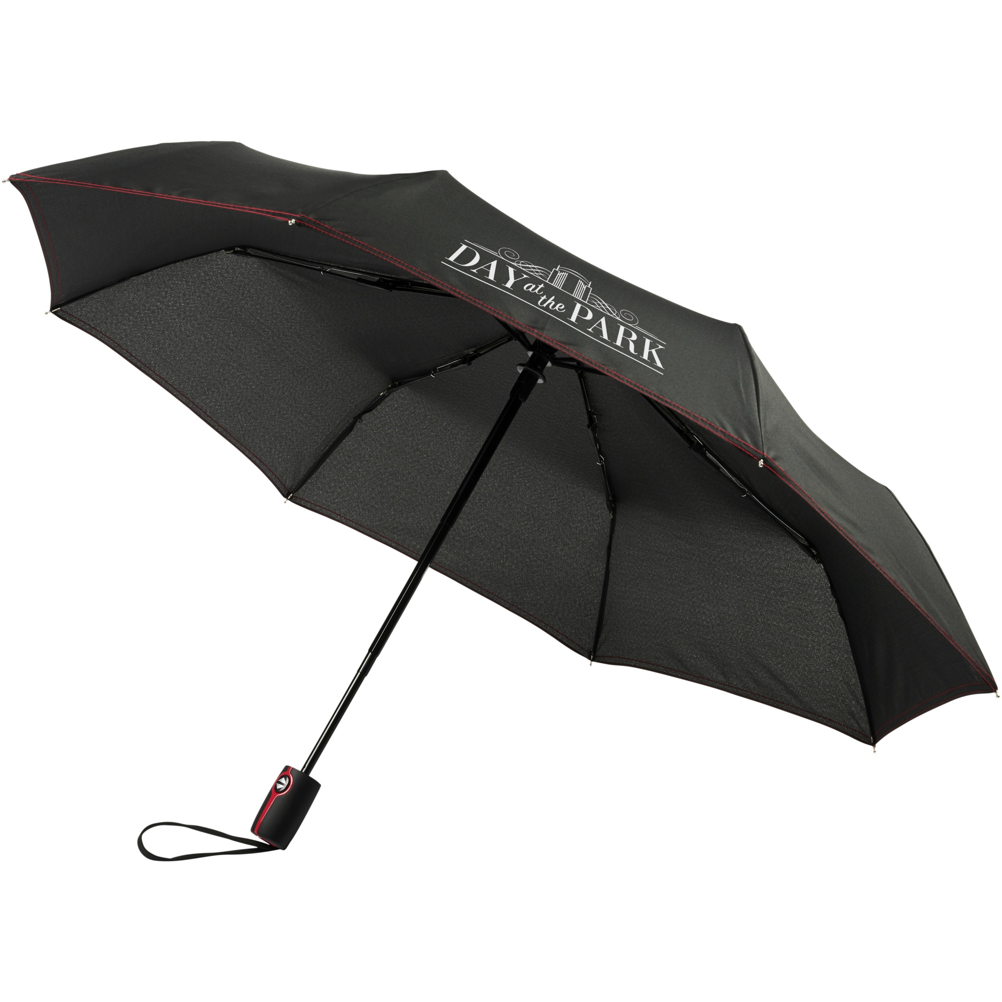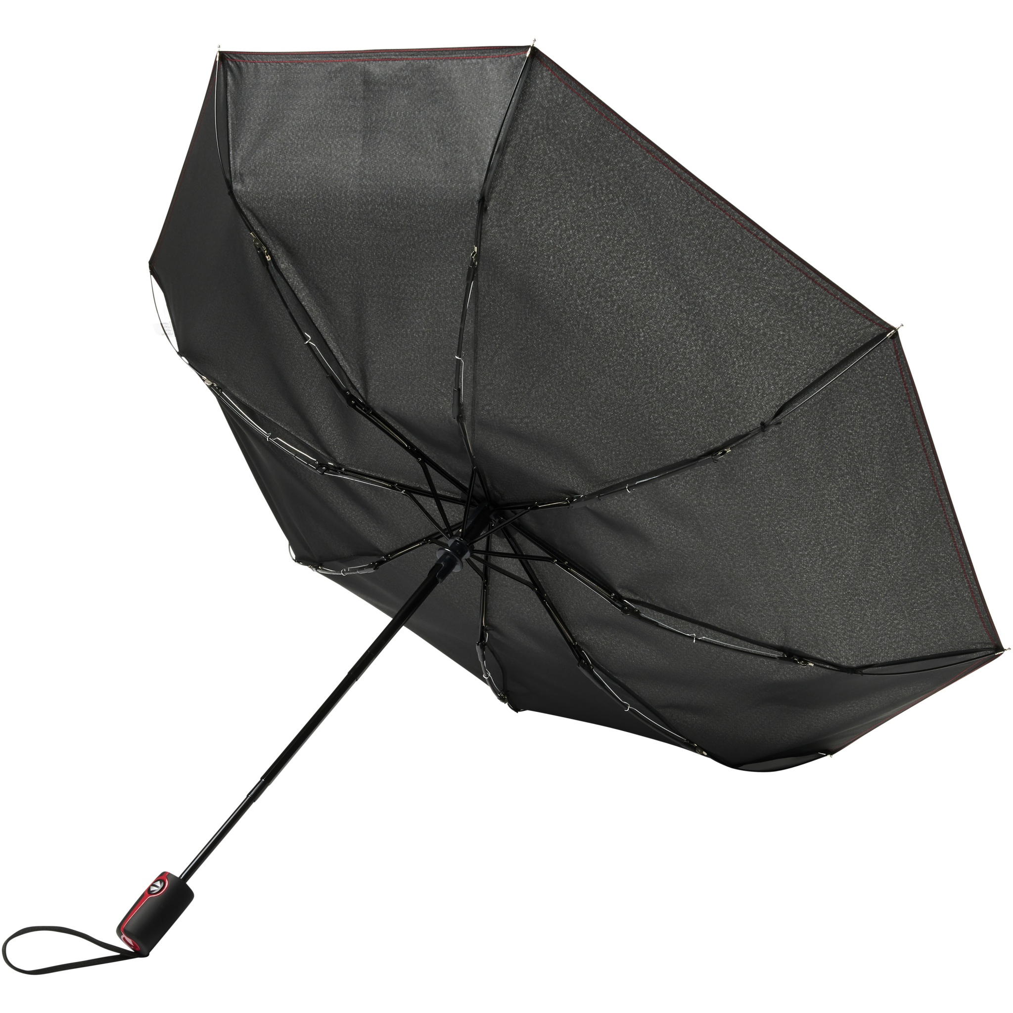 Automaatselt avatav ja suletav kokkupandav vihmavari pongee polüester varikatusega. Tugev metallist võll, kvaliteetne klaaskiust ribidega raam, mis pakub maksimaalset paindlikkust tuulistes oludes. Tarnitakse kotiga ja mahub hõlpsasti käe- või seljakotti mugavaks kandmiseks. Värvilised detailid on saadaval pehme puutetundliku käepideme peal ja üksikasjalikud õmblused varikatusel ja kotil. Suur kaunistusala igal paneelil, samuti käepide.
