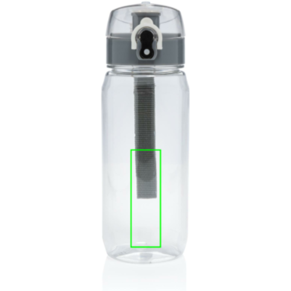 See RCS RPET veepudel on lekkekindel ja sellel on lukustatav ja ühe käega juhitav kaas. Sellel on ka käepide, mis hõlbustab kaasaskandmist. Pudeli korpus on valmistatud 100% RCS sertifikaadiga RPET-st. RCS-sertifikaat tagab taaskasutatud materjalide täielikult sertifitseeritud tarneahela. Ainult käsipesu. See toode on mõeldud ainult külmade jookide jaoks. Taaskasutatud kogusisaldus: 73% eseme kogukaalust. BPA vaba. Mahutavus 600ml. Kaasa arvatud FSC®-sertifikaadiga kraft-kinkepakend.