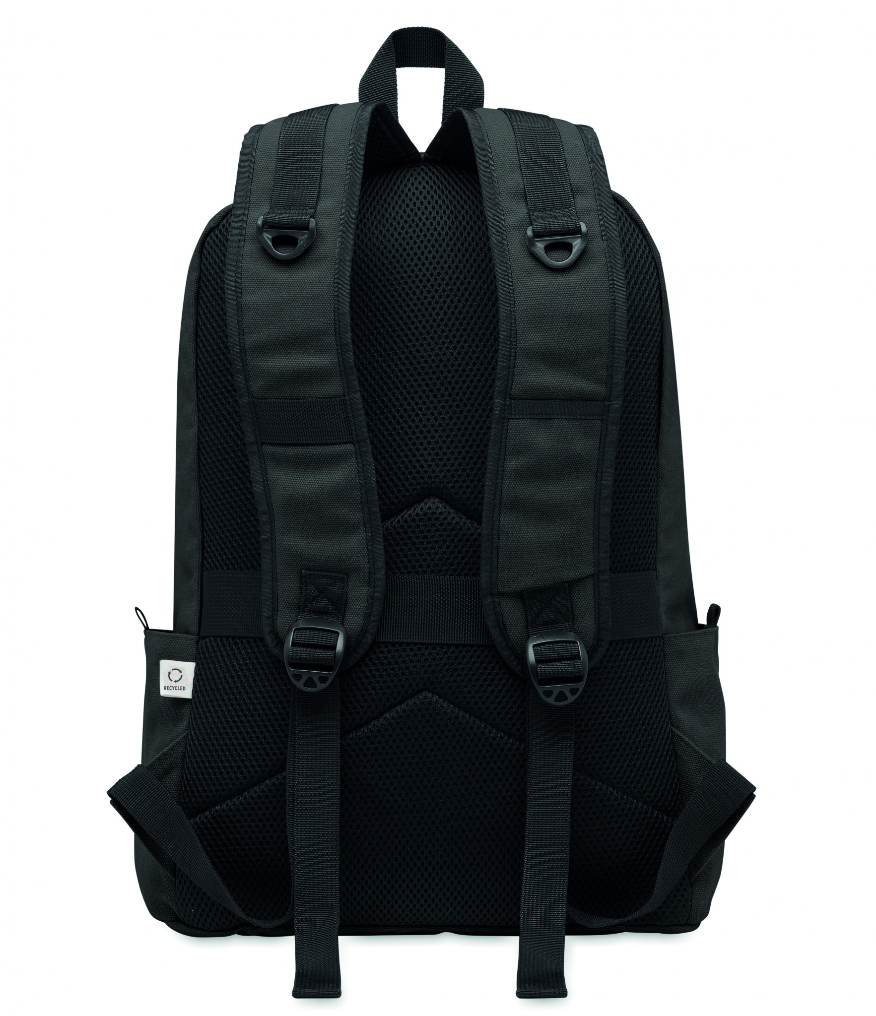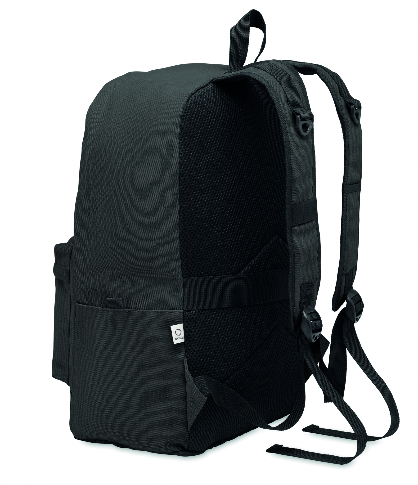 15 tuuman kannettava reppu kierrätetystä esikulutetusta puuvillasta mukautettavalla painatuksella, Musta