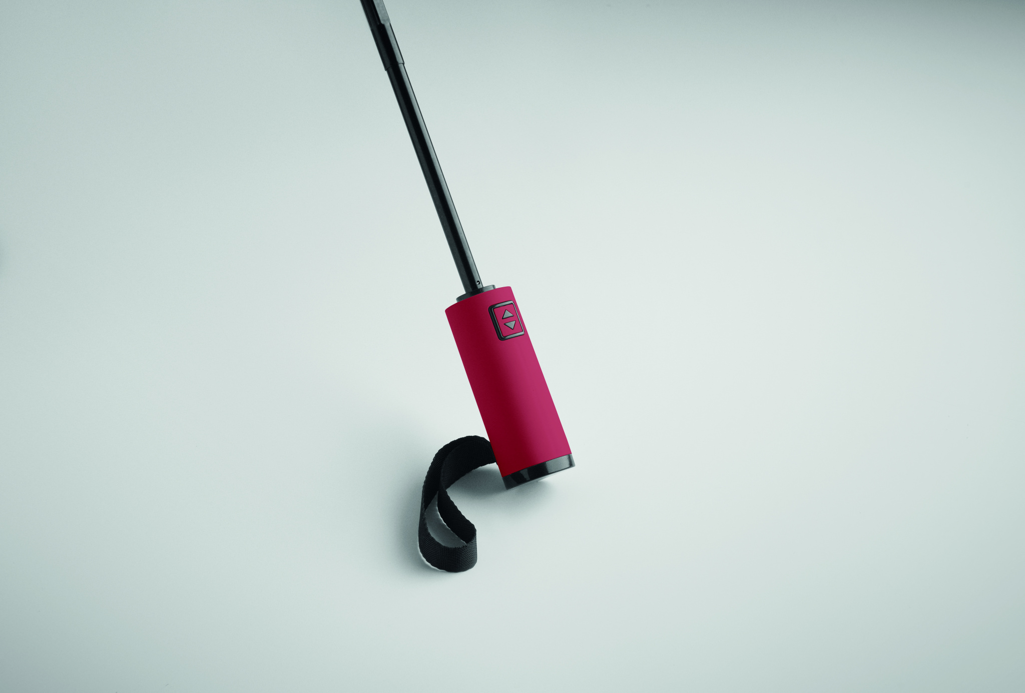 23” 3-osainen käänteinen tuulenpitävä sateenvarjo 190T RPET-pongeesta, mukana suojapussi. Automaattinen avaus ja sulku, täysin musta pinnoitettu runko, lasikuituruoteet ja kumipintainen ABS-kahva.