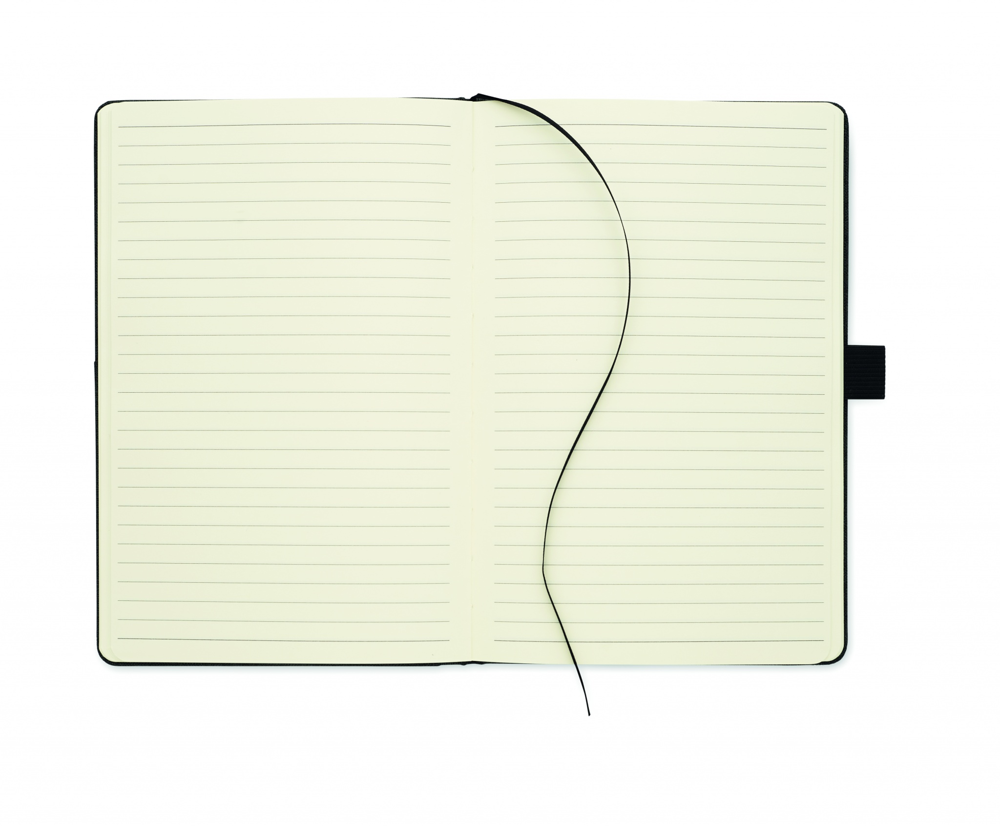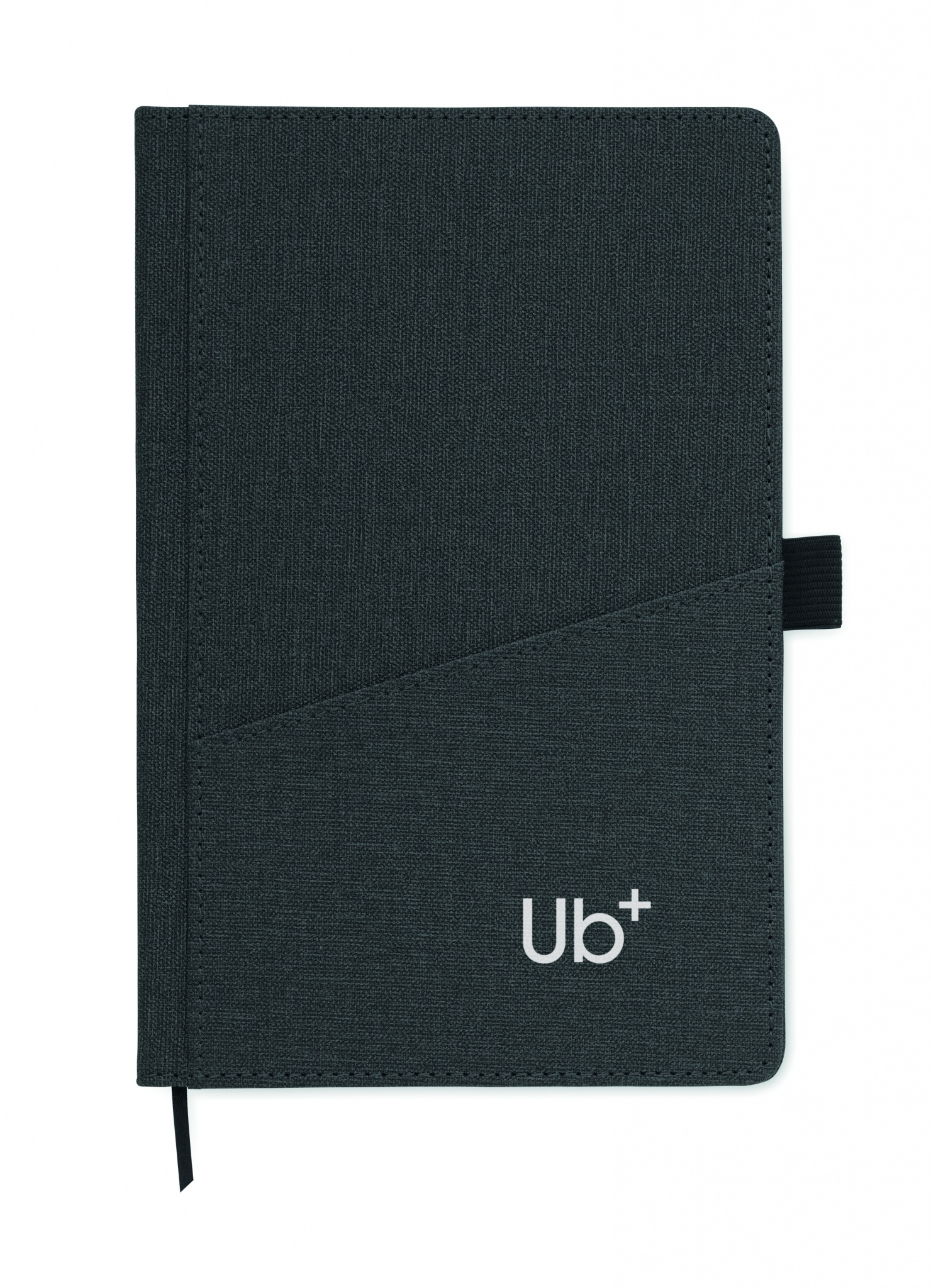 A5-muistikirja, jossa on PU-kova kansi ja puhelintasku edessä. Koteloitu. 160 viivoitettua sivua kierrätyspaperista (80 arkkia). Yhteensopiva kirjanmerkkinauha.