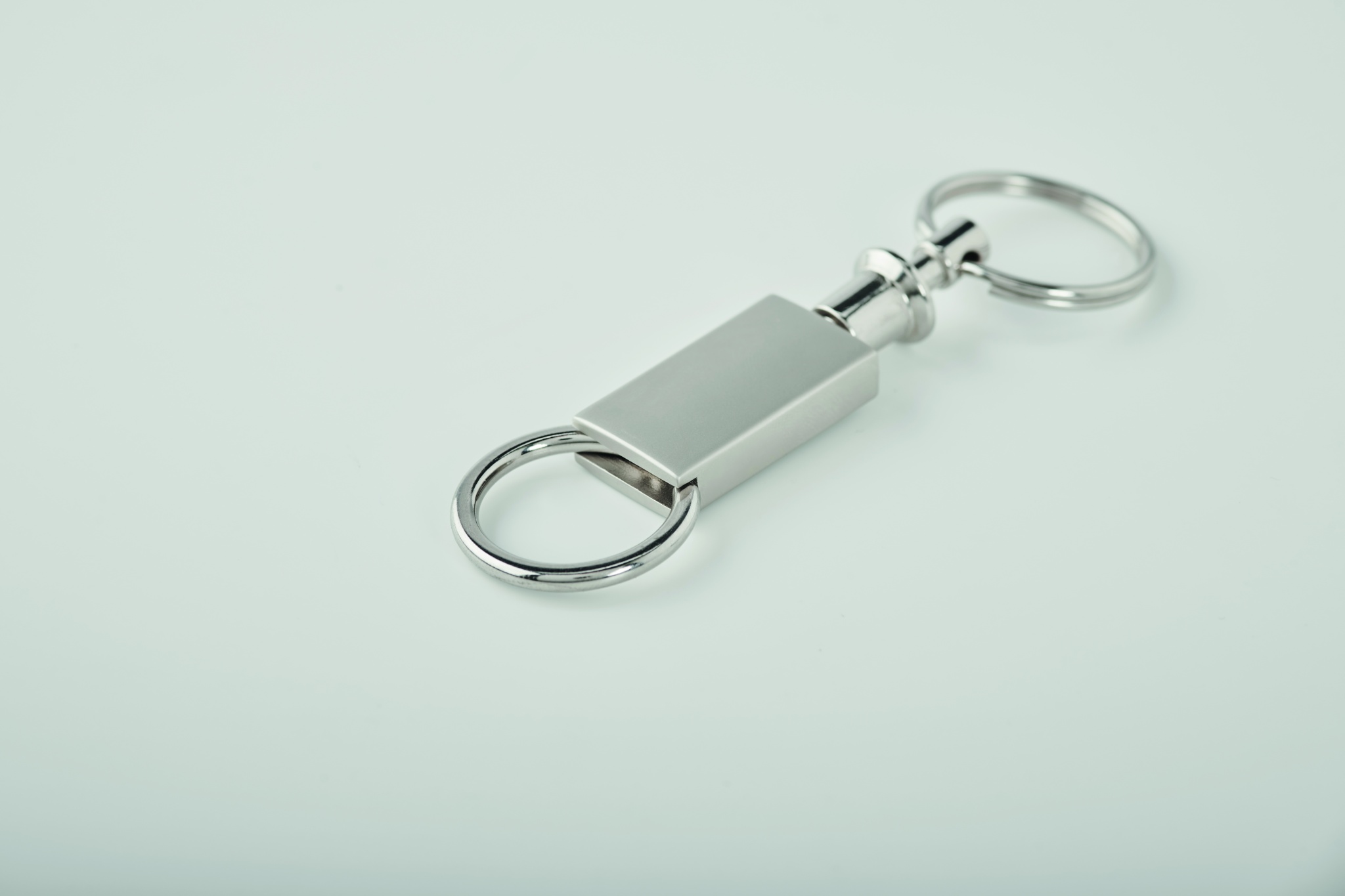 2 in 1 -avainrengas sinkkiseoksesta. Vedä avainrengas irti ja siinä on 2 avainrengasta.