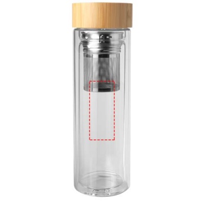 Kaksiseinäinen borosilikaattilasinen vesipullo, jossa on teeuuttaja ja bambukansi. Bambu on peräisin luontoystävällisistä, yhteiskunnallisesti ja ympäristön kannalta vastuullisista lähteistä. Tilavuus: 400 ml. Toimitetaan kierrätetystä kartongista valmistetussa lahjapakkauksessa.