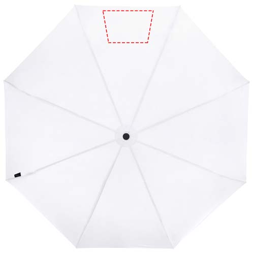 Kokoontaitettava sateenvarjo, jonka kupu on pongee-polyesteri PET-kierrätysmuovista. Tukeva metallivarsi ja laadukas runko lasikuitutuilla joustavat tuulessa. Mukana tuleva pussi kulkee mukavasti käsilaukussa tai repussa. Puinen kahva ja PET-kierrätysmuovista valmistettu pongee-polyesterikupu tekevät tästä ympäristöystävällisen vaihtoehdon. Laaja valikoima nykyaikaisia värejä ja suuri logomerkintä jokaisessa paneelissa.