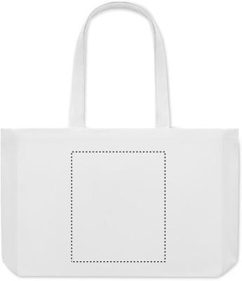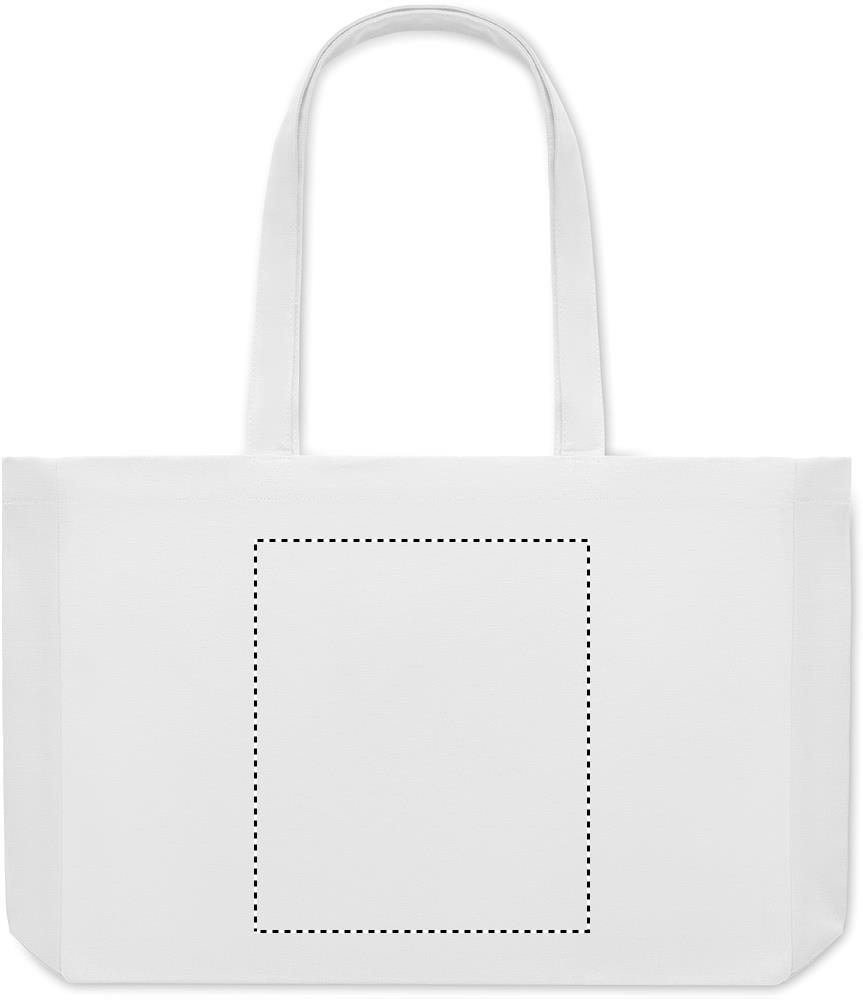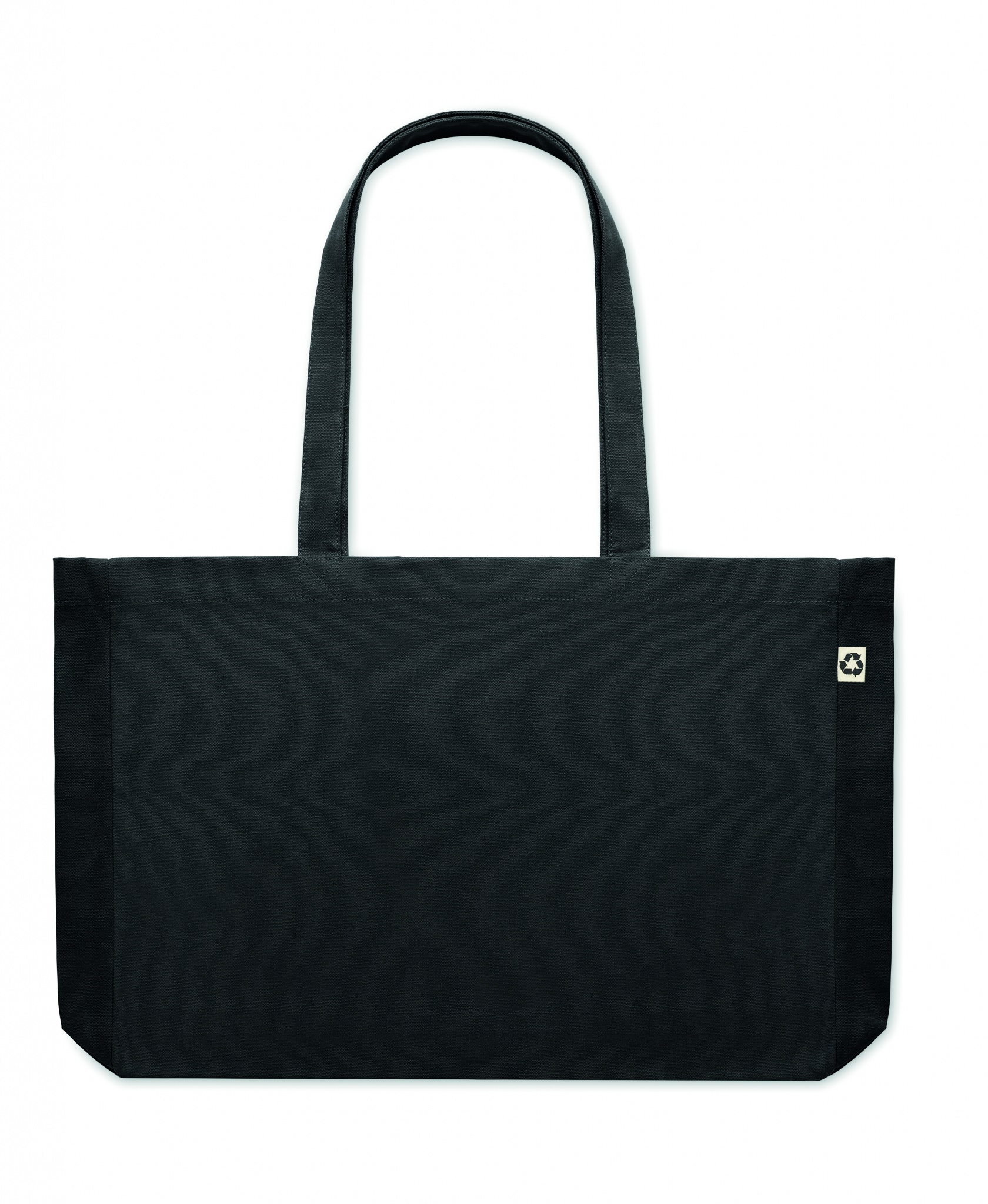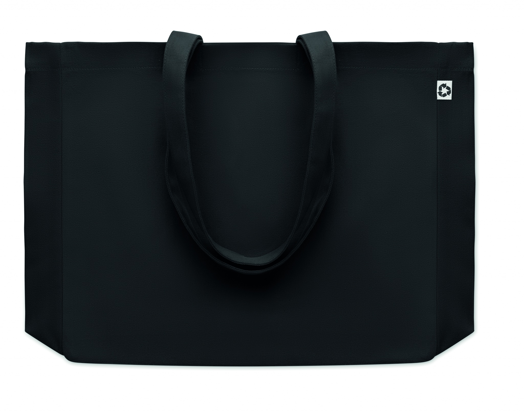 280 gr/m² kierrätetty canvas kassi, pitkillä kahvoilla ja pohja levikkeellä. Tuote on valmistettu 50% puuvillasta ja 50% kierrätetystä puuvillasta.