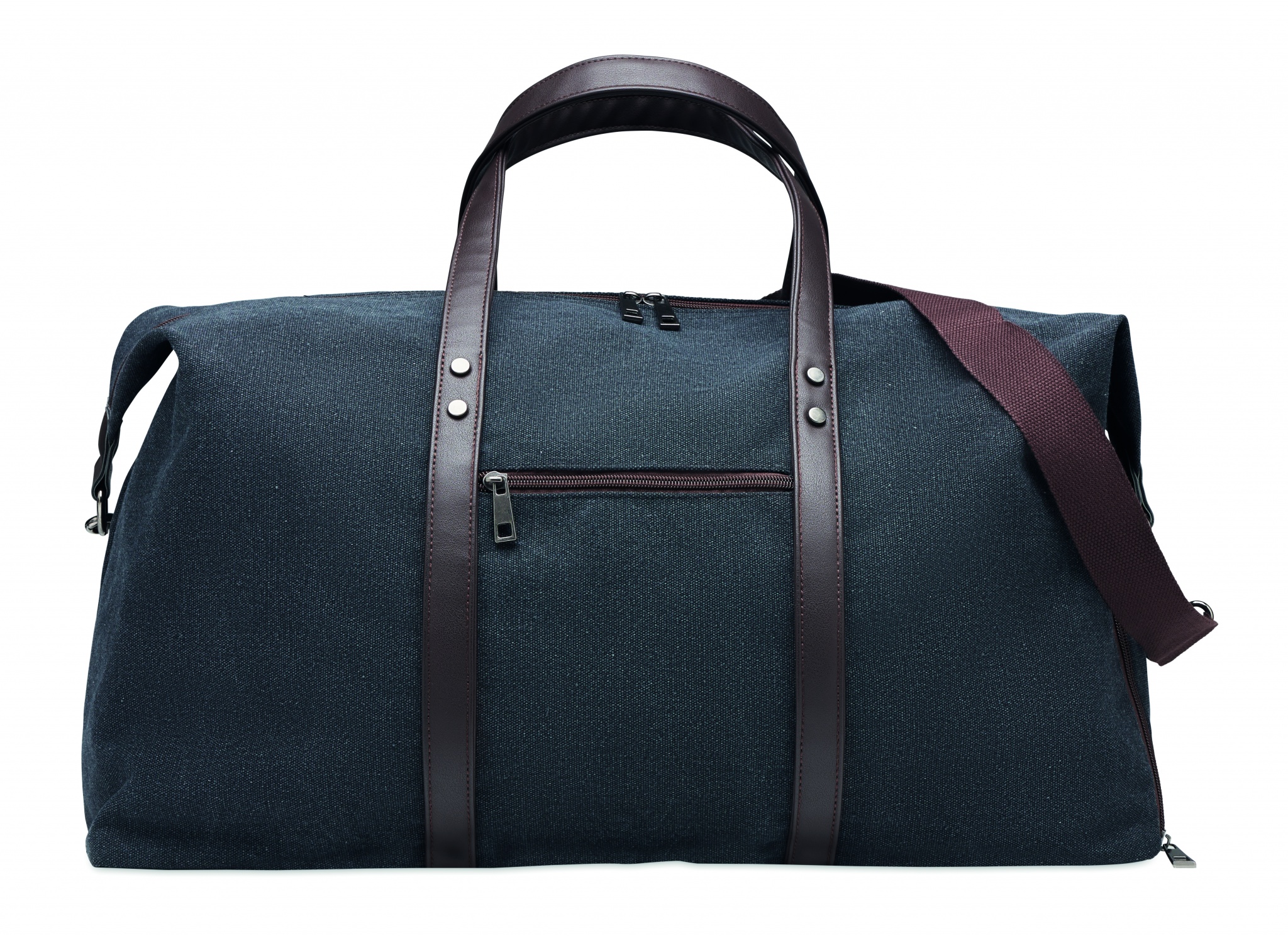 450 gr/m² laukku pestyä canvasta, PU yksityiskohdilla ja RPET 210D vuorauksella. Sisältää erillisen taskun kenkien kuljettamiseen ja säädettävän/ irroitettavan olkahihnan.