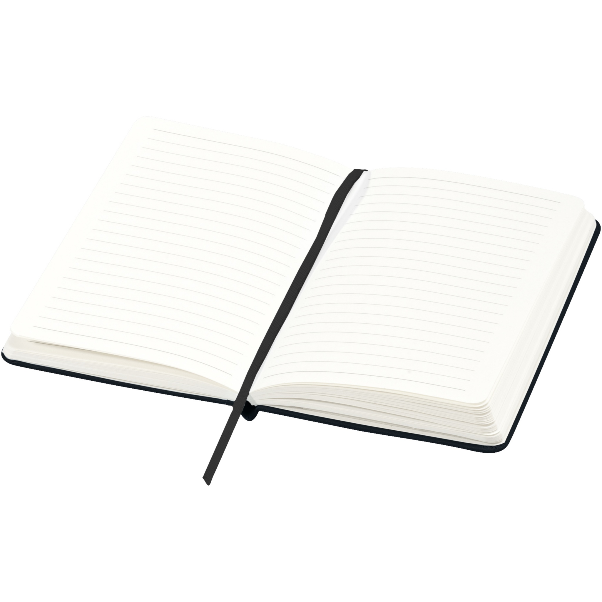 Laadukas, kovakantinen muistikirja (A5), jossa on joustava suljentanauha ja 80 arkkia (80 gms) viivoitettua paperia. Sopii erinomaisesti kirjoittamiseen ja muistiinpanoihin. Takaosassa tasku, jossa voi säilyttää pienikokoiset muistiinpanot. Mukana Journalbook-lahjalaatikkosuoja.