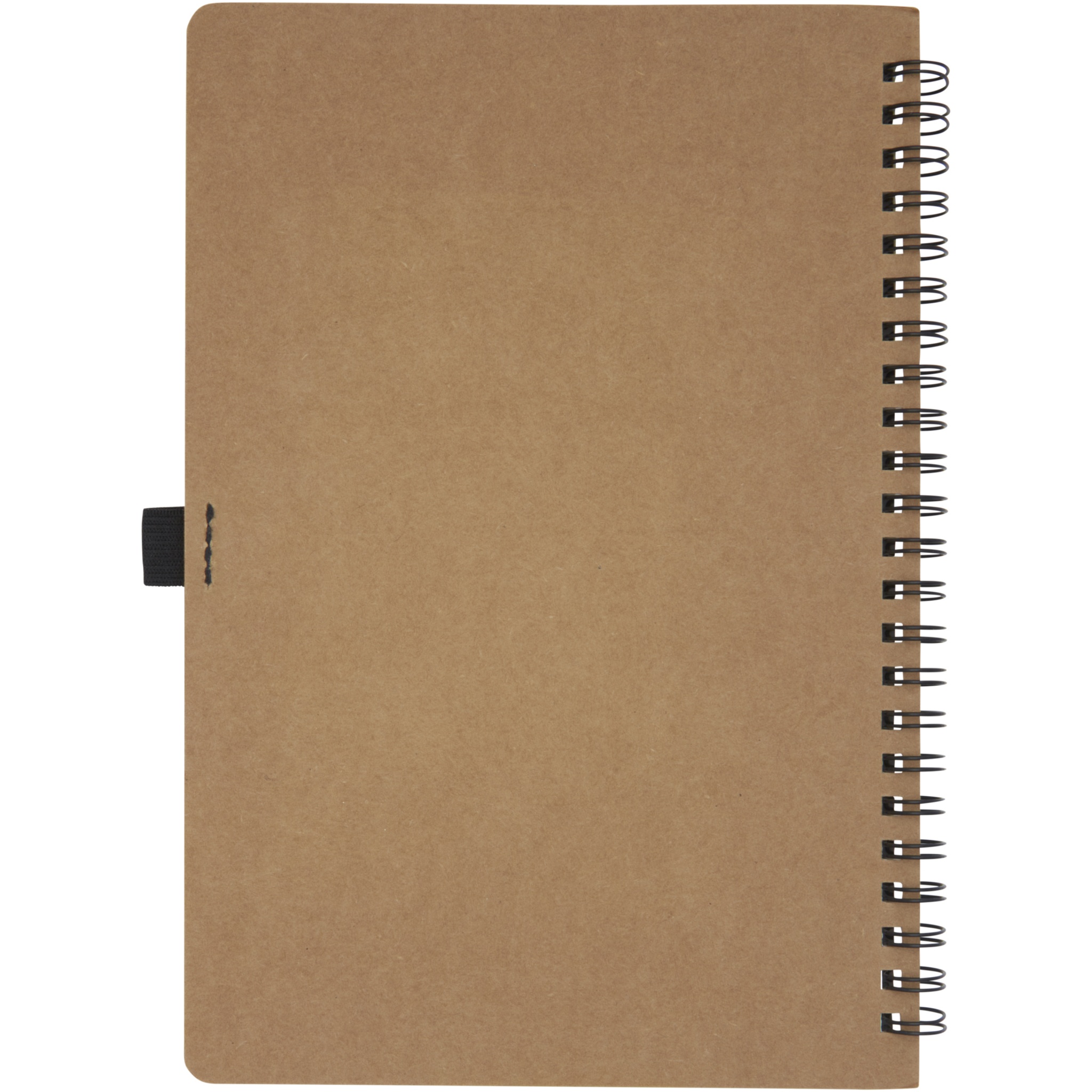 A5-kokoinen kierremuistikirja kierrätyskartonkikansilla ja kynäpidikkeellä. 70 arkkia, 60 g/m², vuorattuja sivuja, jotka on valmistettu kivestä. Kivipaperi on 100-prosenttisesti puutonta, ja tuotantoprosessissa käytetään vähemmän energiaa verrattuna kierrätettyyn tai uuteen sellupaperiin. Paperi on vettähylkivä ja repeämätön. Sen väri on luonnonvalkoinen (ei valkaistu).
