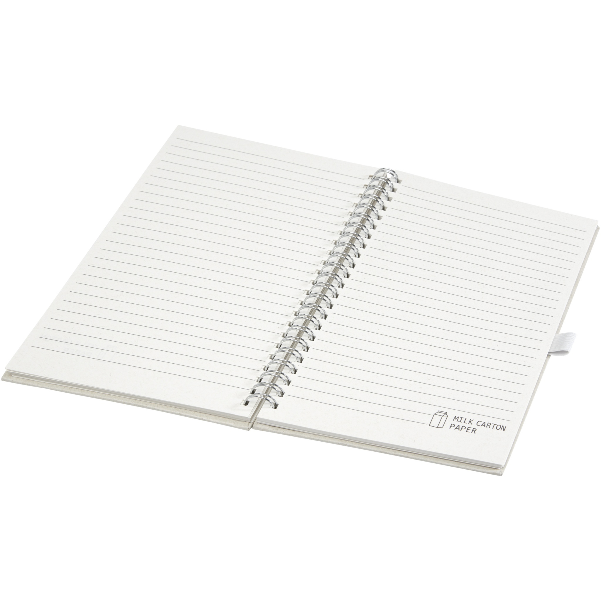 Dairy Dream A5-kokoinen kierremuistivihko, valmistettu kierrätyistä maitopurkeista, Luonnonvalkoinen