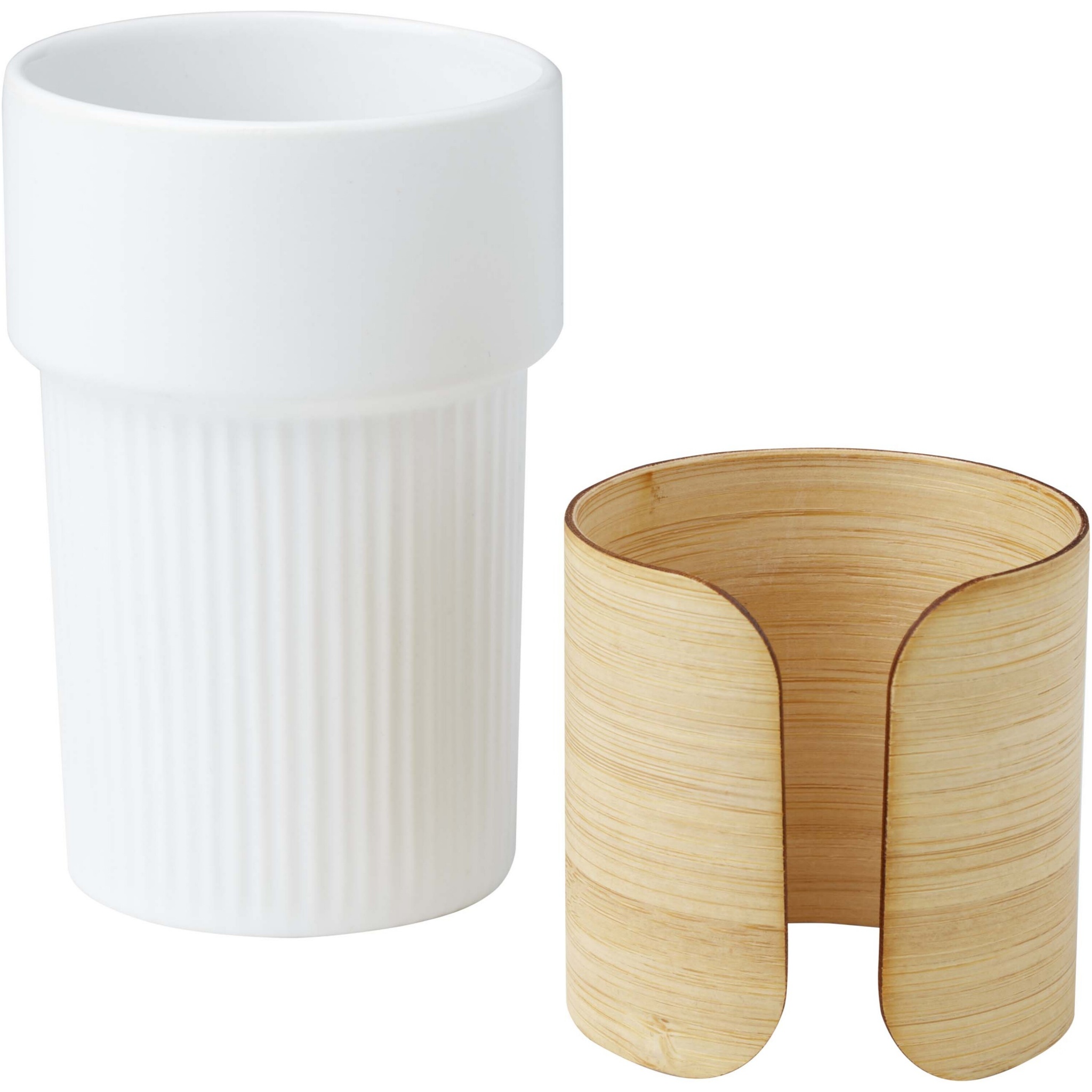 Tyylikkäässä Fika keraamisessa kahvimukissa on irrotettava bambureunus, joka helpottaa kuumien juomien nauttimista. Bambu on peräisin luontoystävällisistä, yhteiskunnallisesti ja ympäristön kannalta vastuullisista lähteistä. Tilavuus: 340 ml. Toimitetaan kierrätetystä kartongista valmistetussa lahjapakkauksessa.